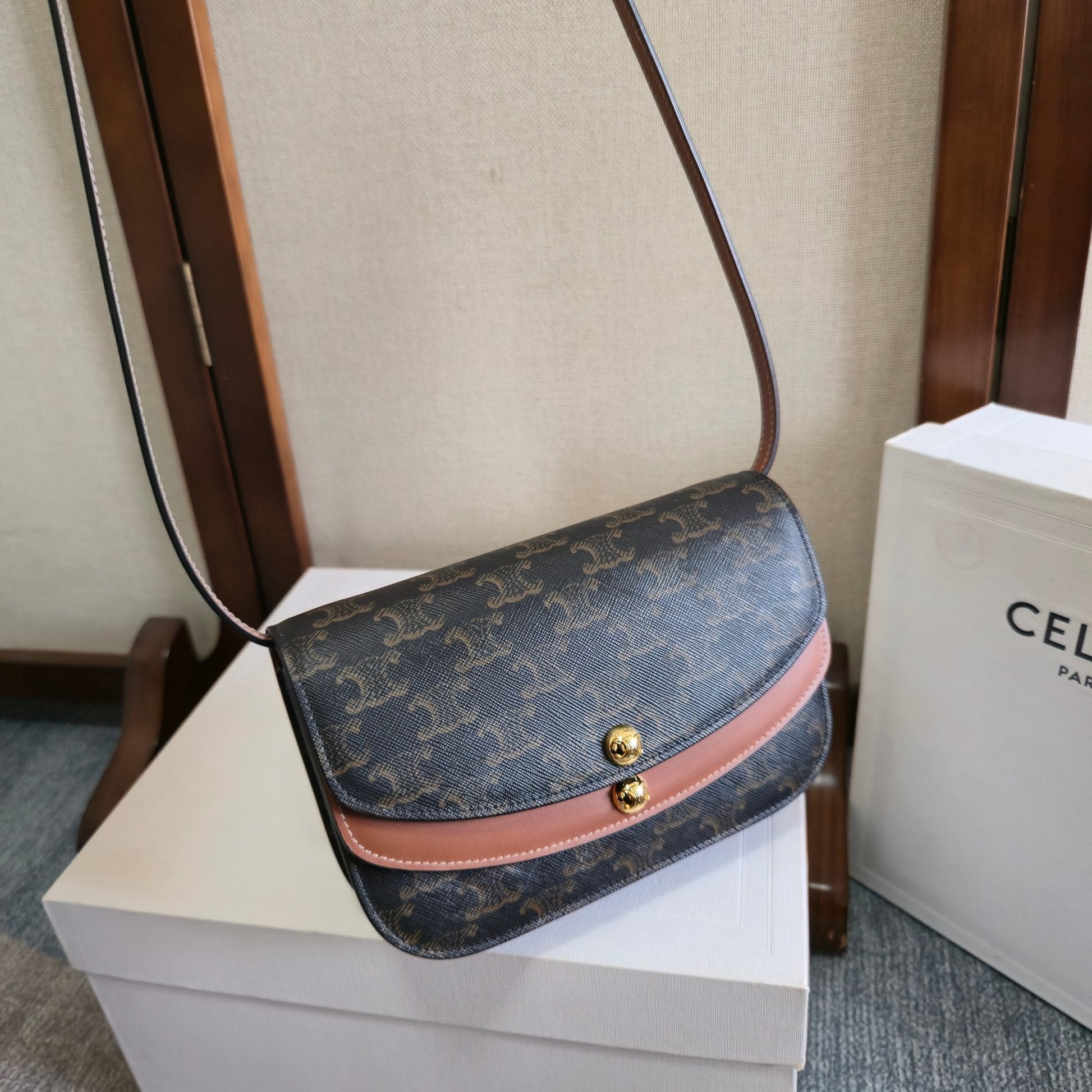Celine 2025 Duo Wallet On Strap Bag 20cm Black Tan Canvas Calfskin 276321