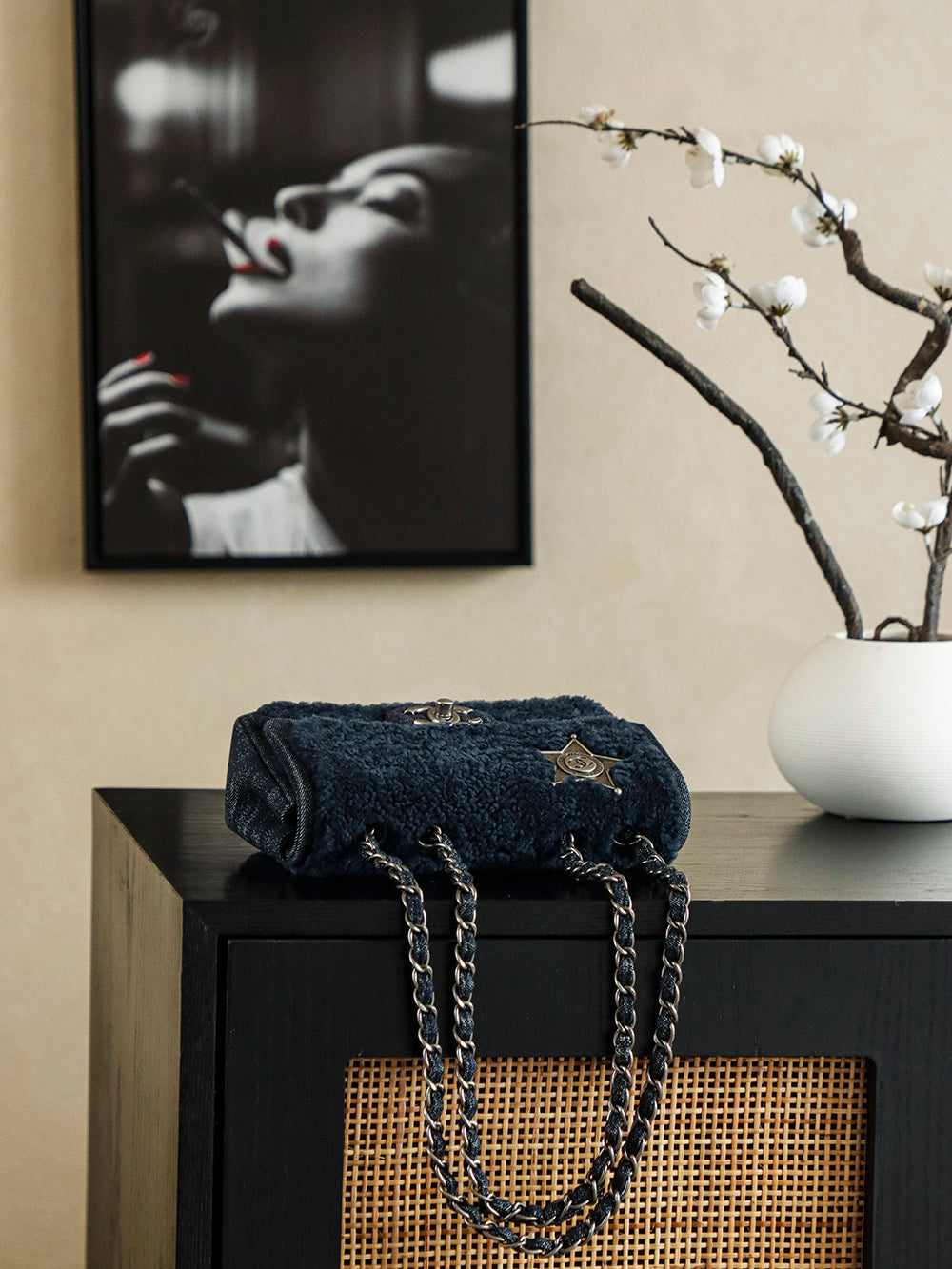 Chanel 2025 Dallas Shearling Star Bag 21cm Navy Blue Wool Denim 318220