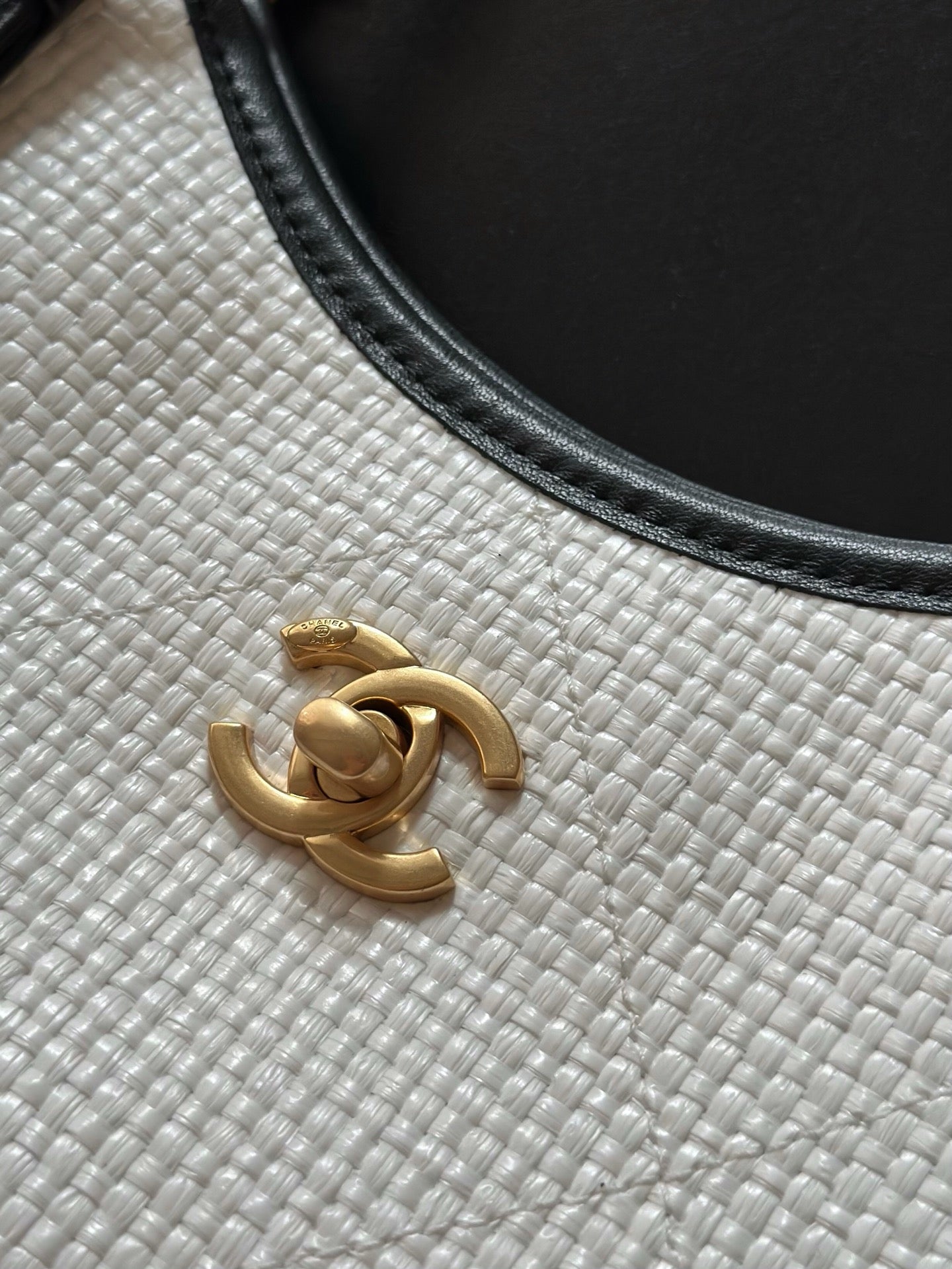 Chanel 2025 Maxi Hobo Bag 31cm White Straw Leather 320856