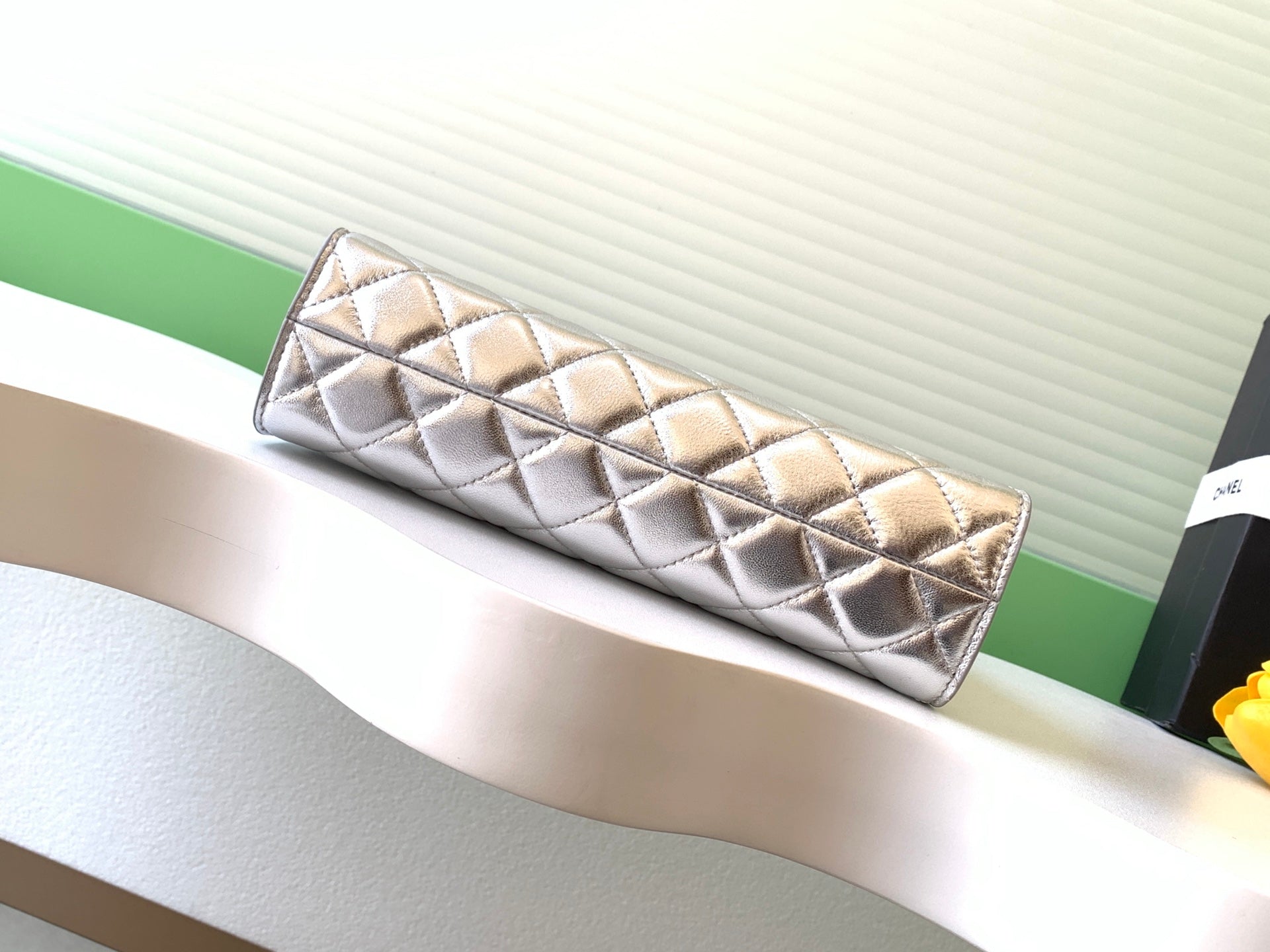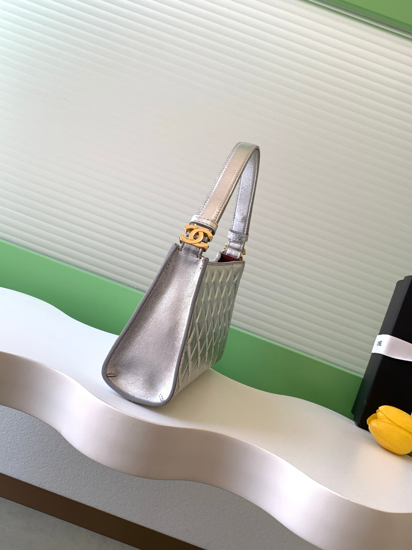 Chanel 25 Christmas Limited Hobo Shoulder Bag Silver Lambskin 324809
