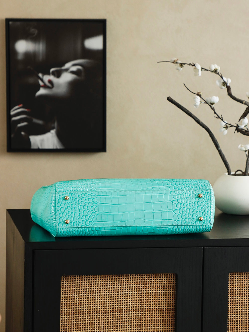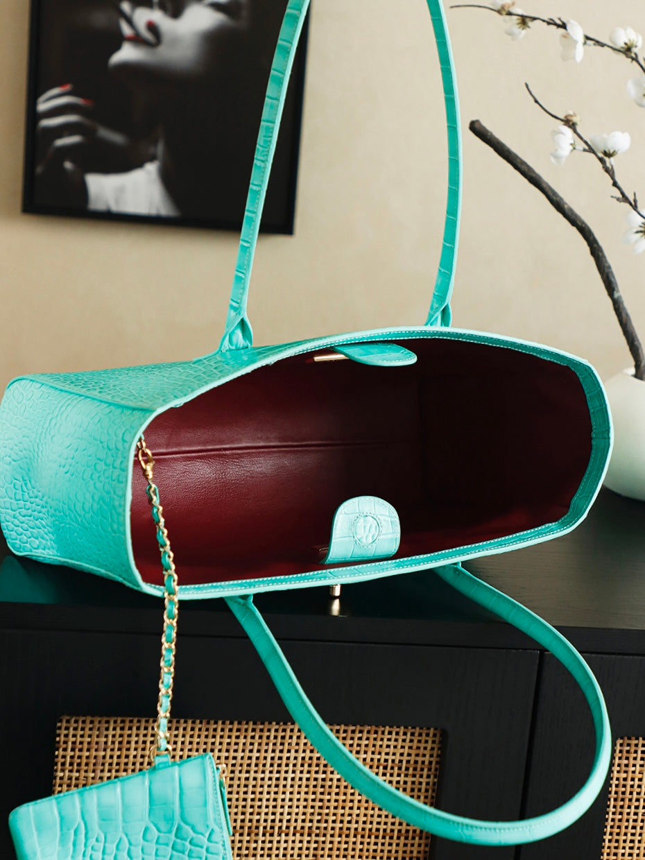 Chanel 25 Crocodile-embossed 40cm Bag Turquoise Cowhide 322961