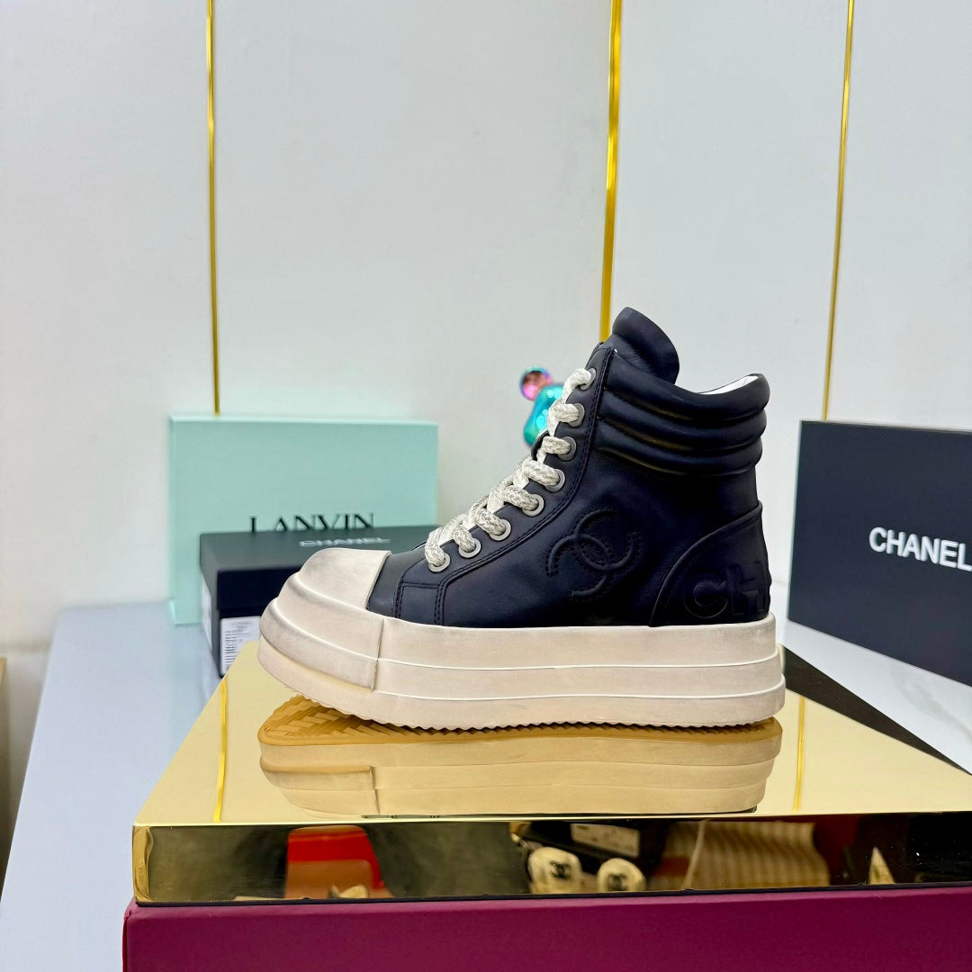 Chanel 25 High Sneaker Black White Cowhide 469784