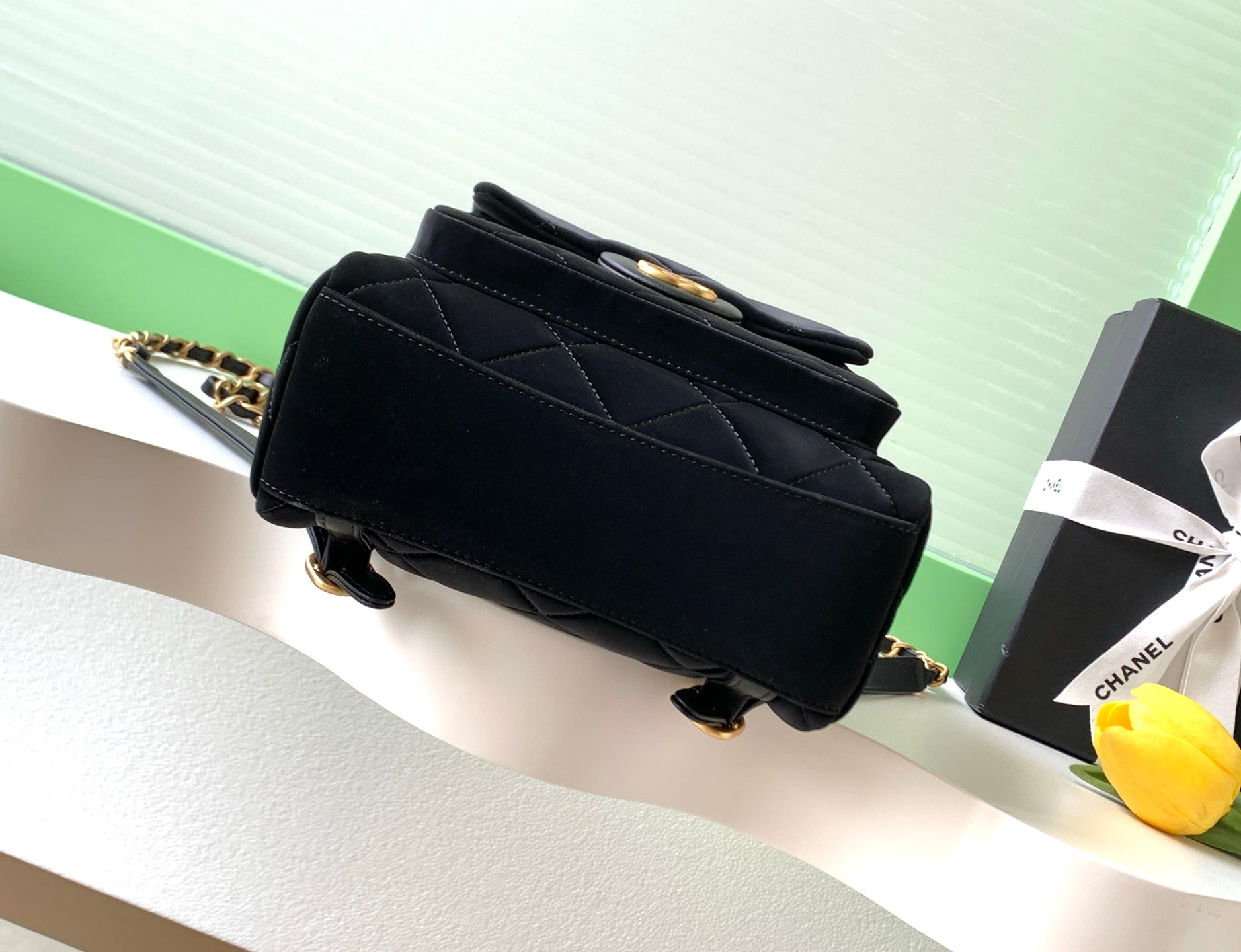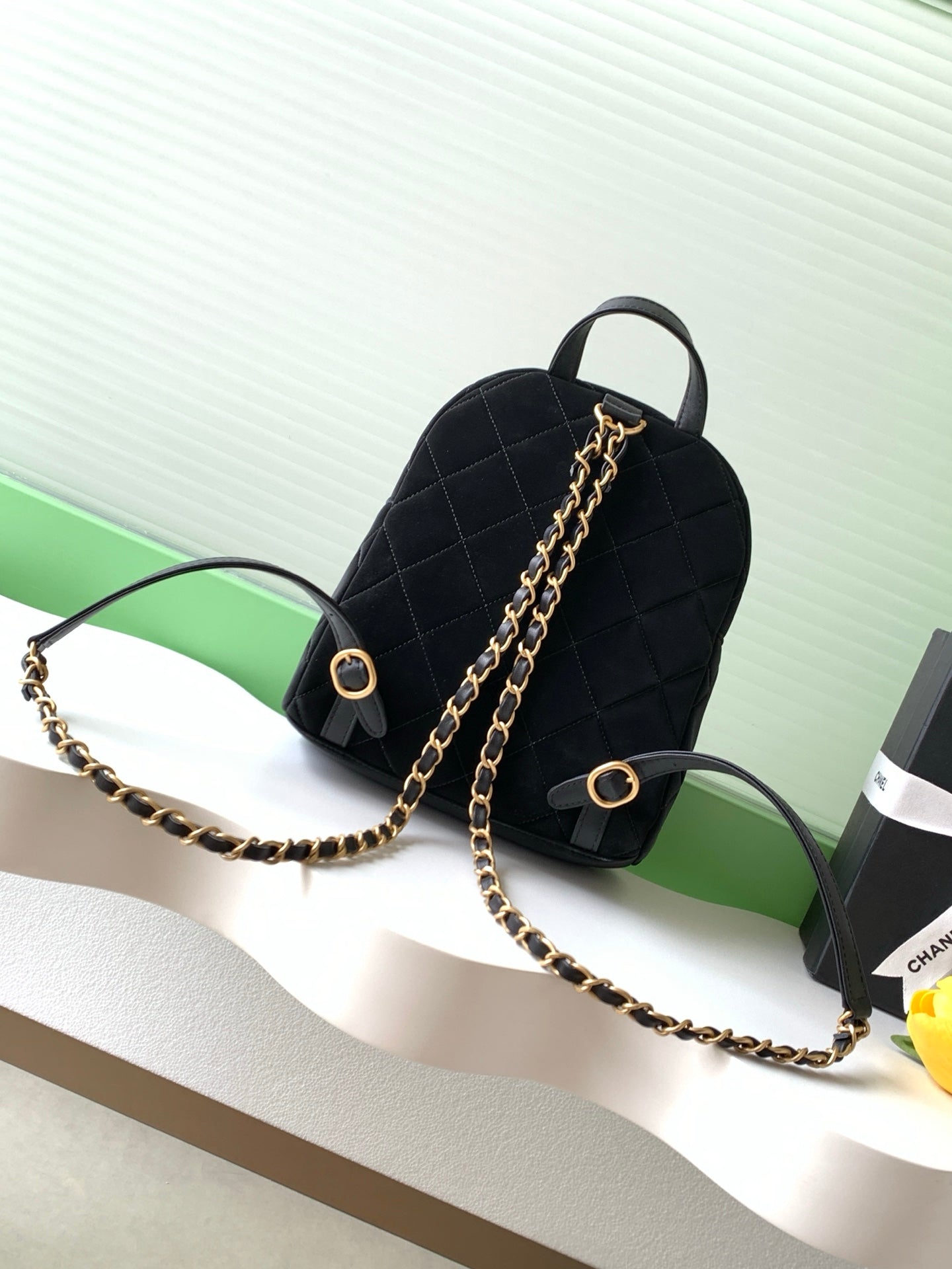 Chanel 25K Backpack Black Gold Suede 295191