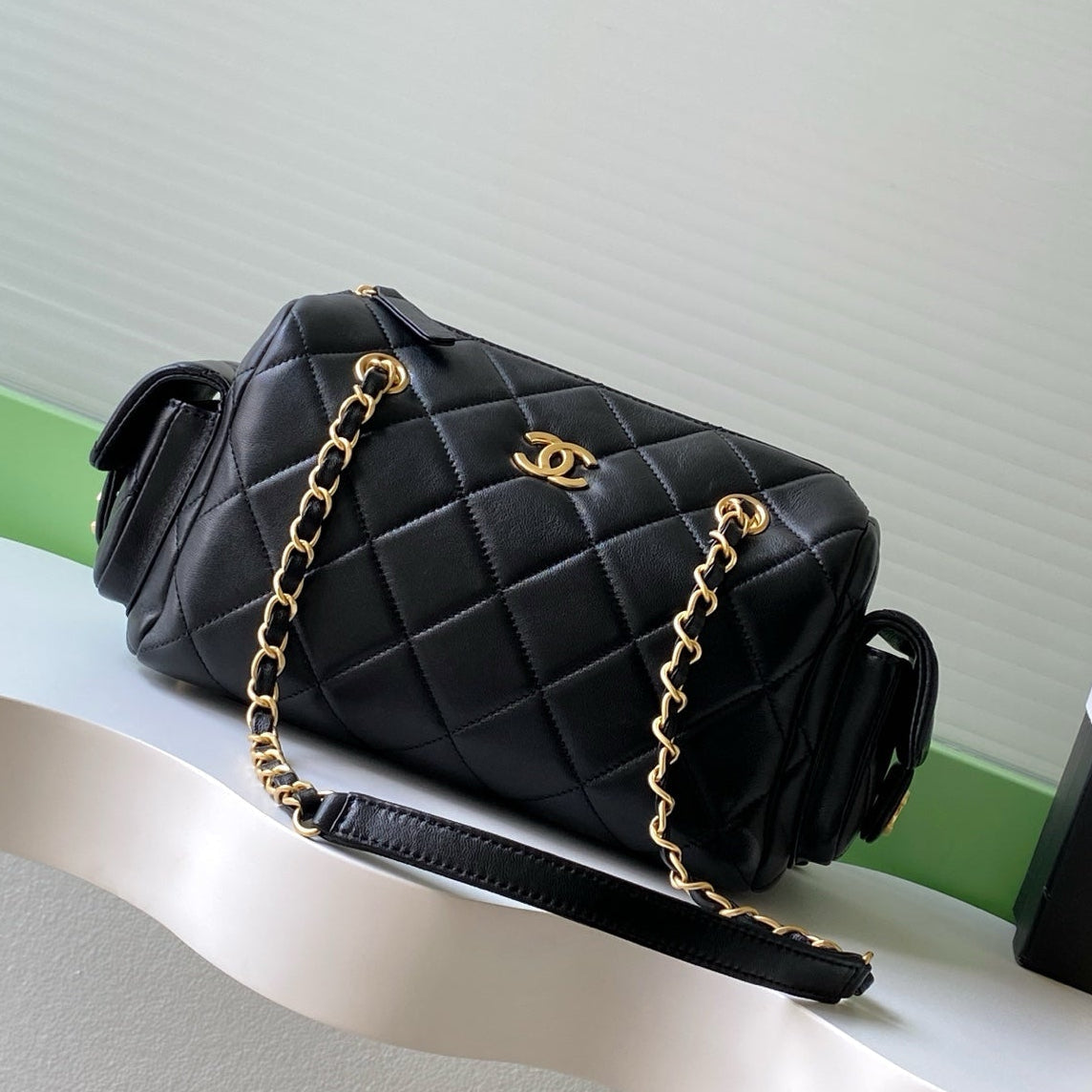 Chanel 25K Bowling Bag Black Gold Sheepskin 294981