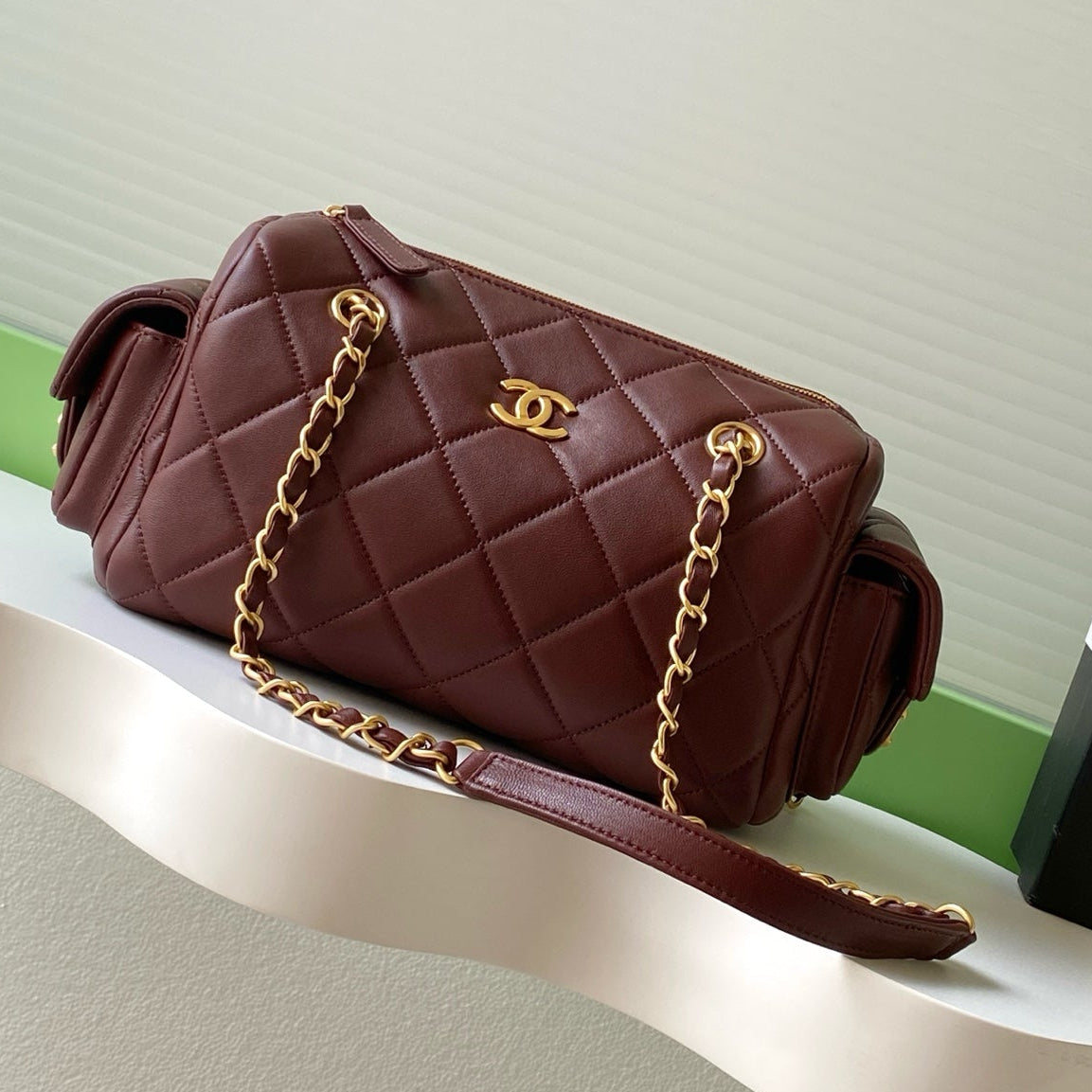 Chanel 25K Bowling Bag Burgundy Gold Sheepskin 294980