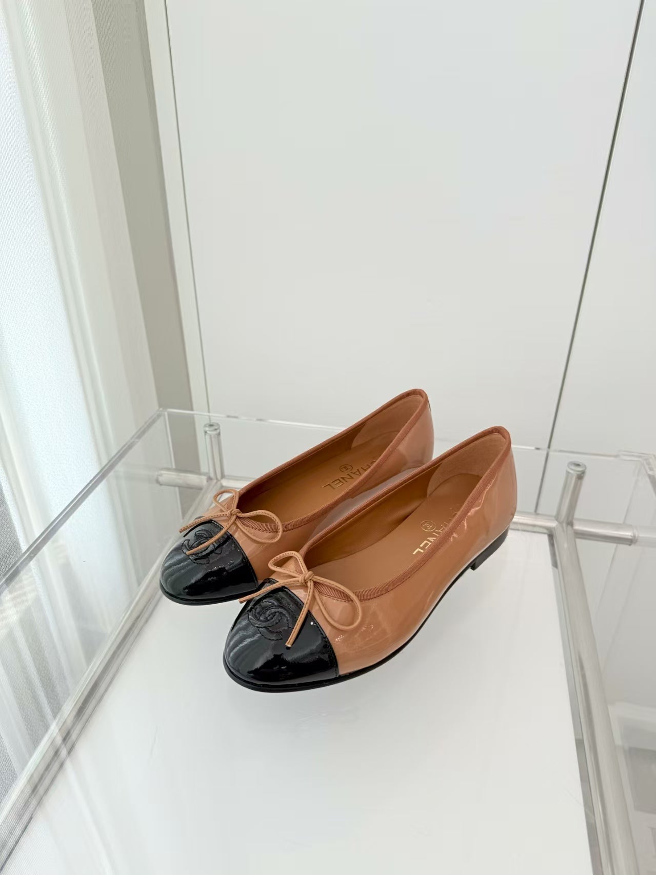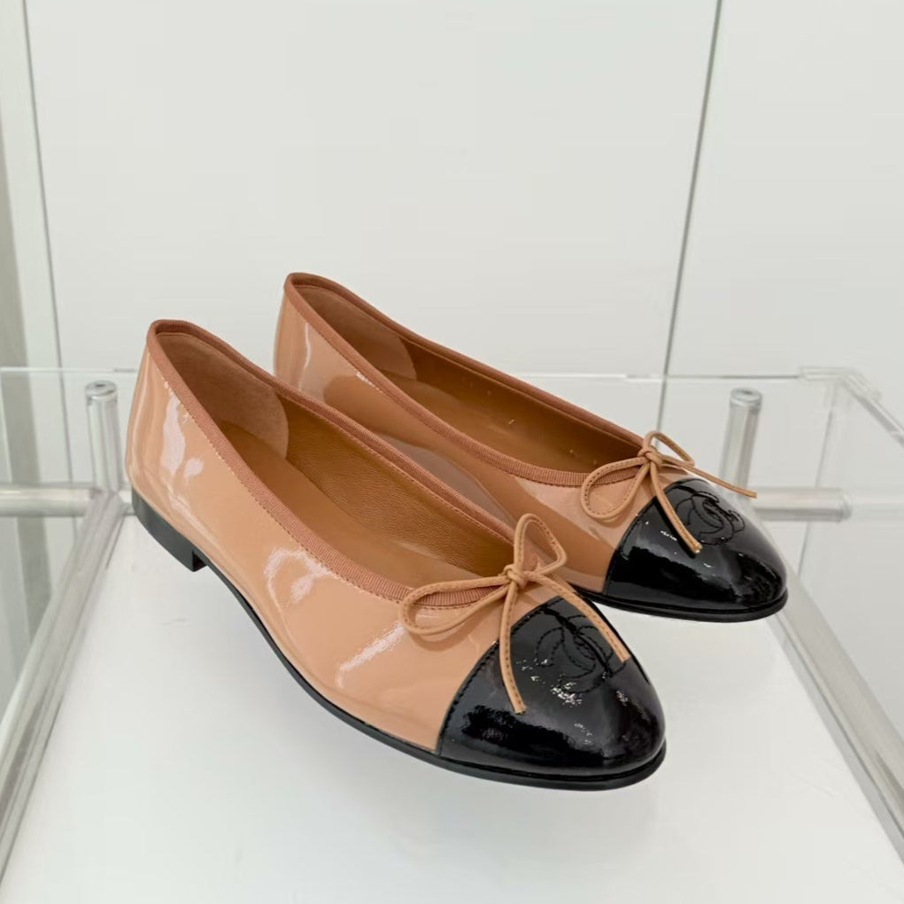 Chanel Ballet Flat Black Brown Patent Leather