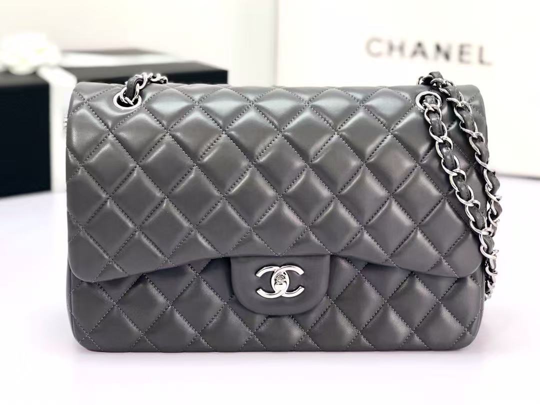 Chanel Flap Bag 30cm Tinware Ash Lambskin