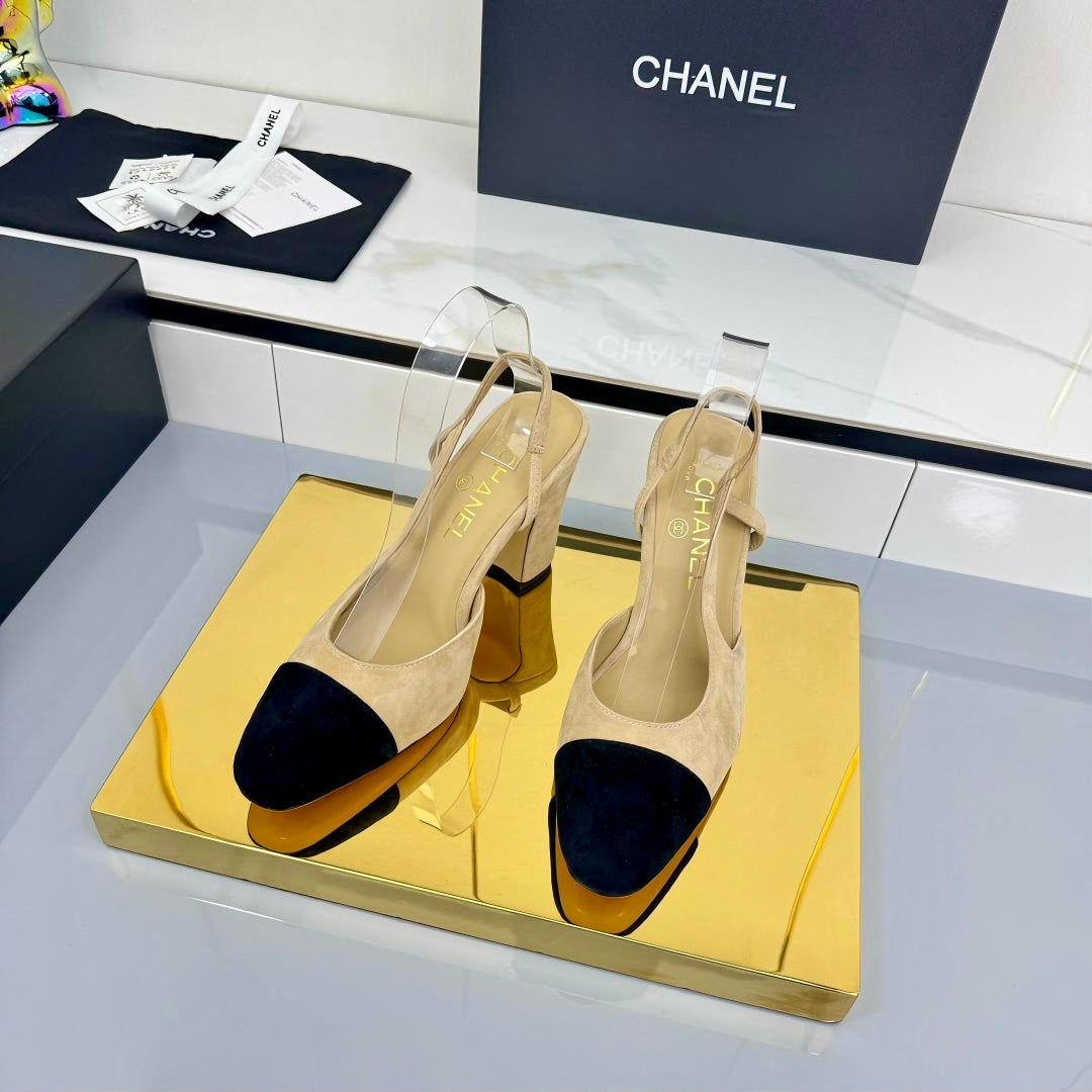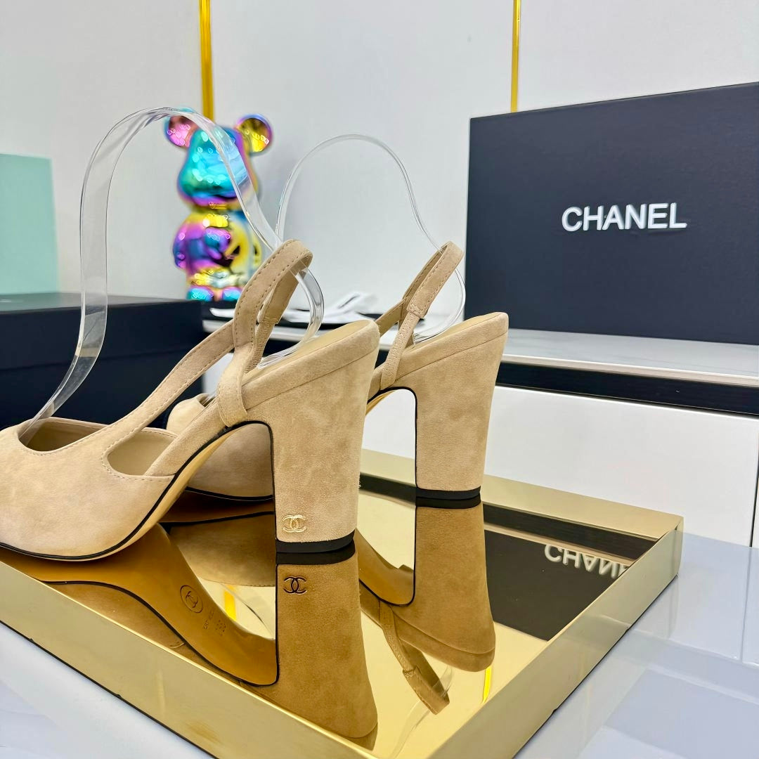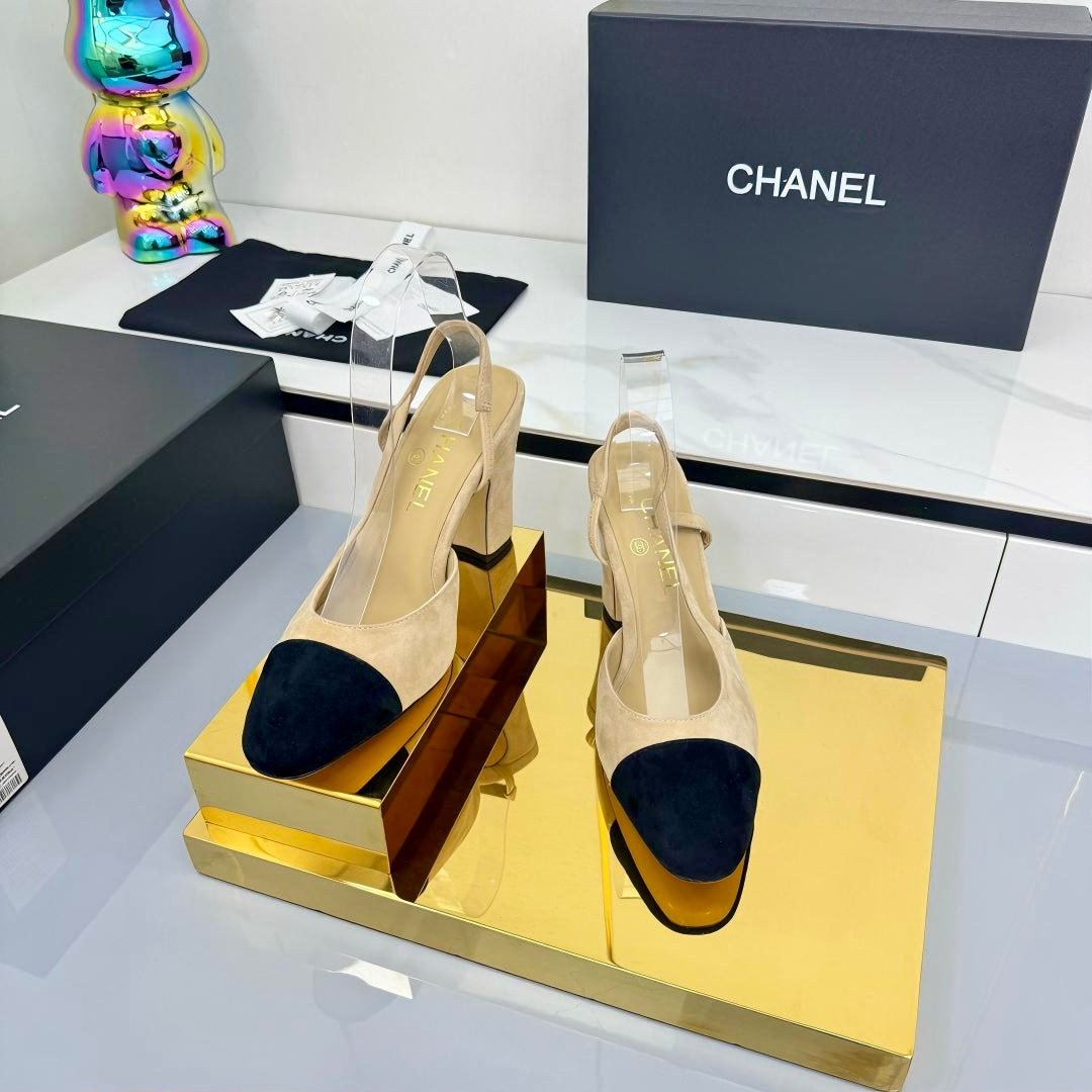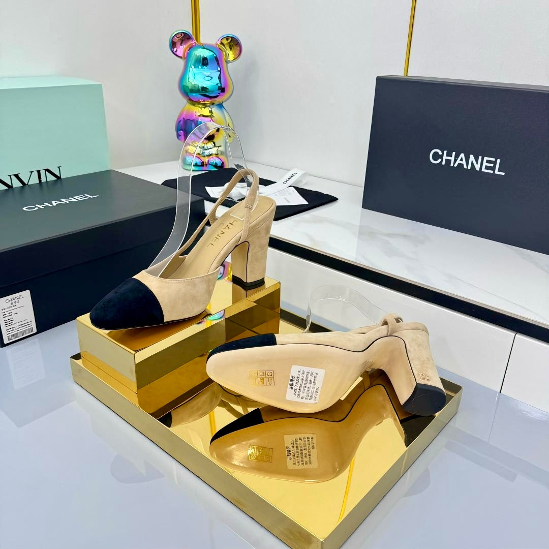 Chanel Slingback 90mm Light Beige Black Suede 469669