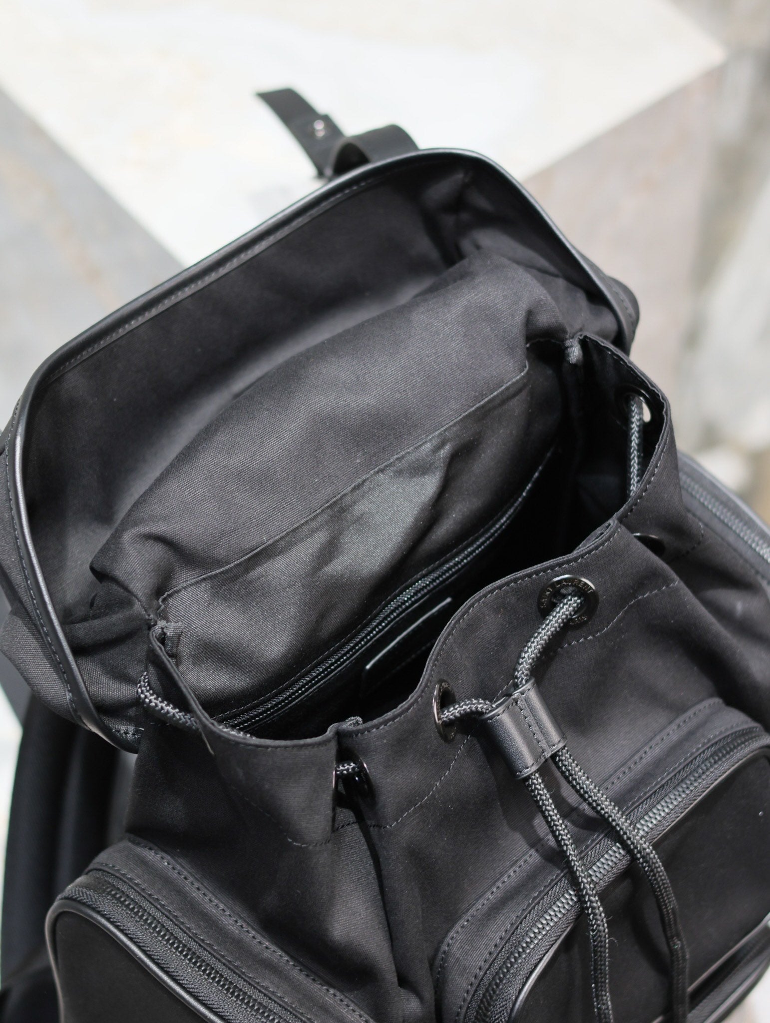CITY MULTI-POCKET BACKPACK 42 IN BLACK NYLON AND SMOOTH CALFSKIN