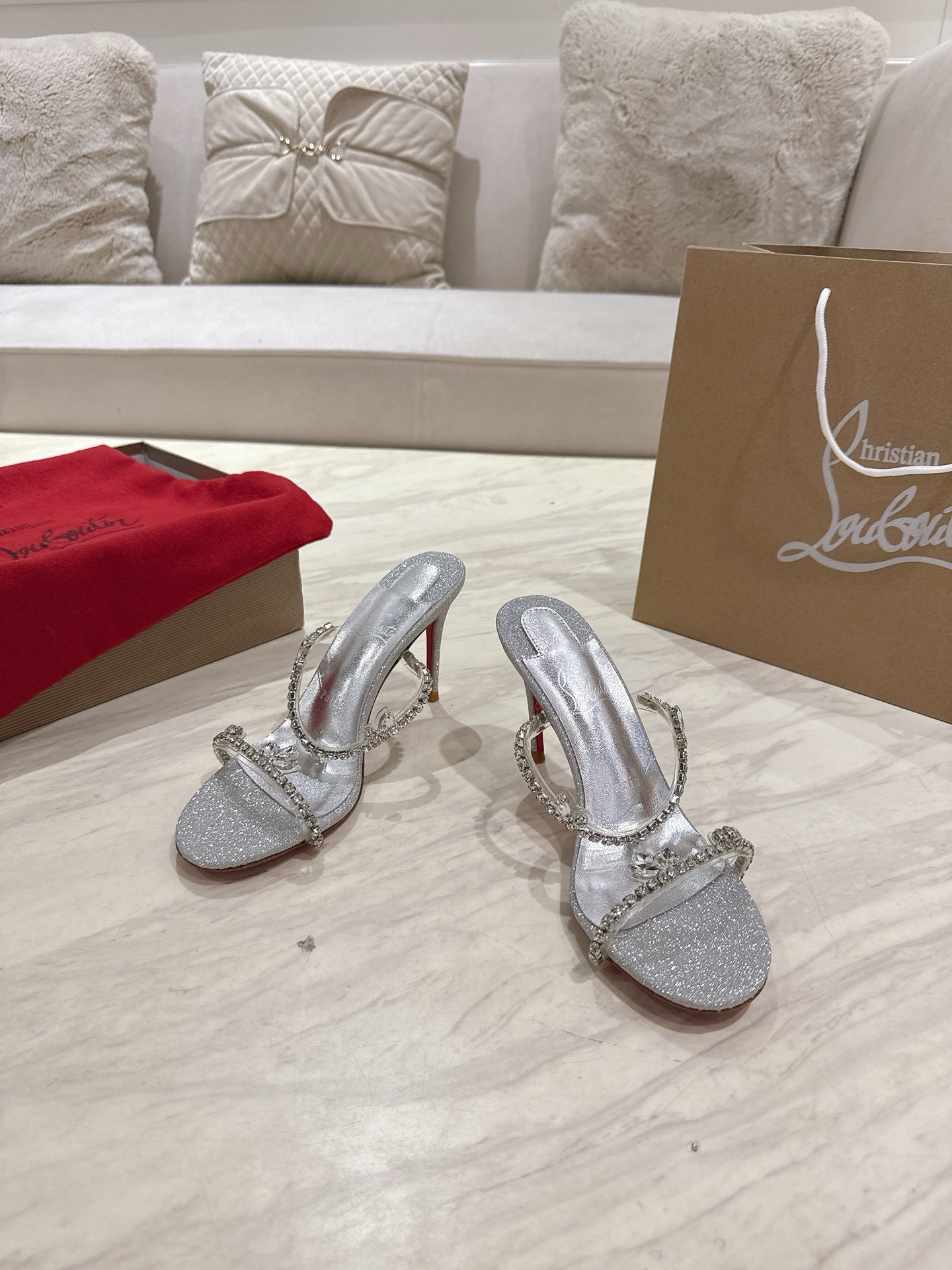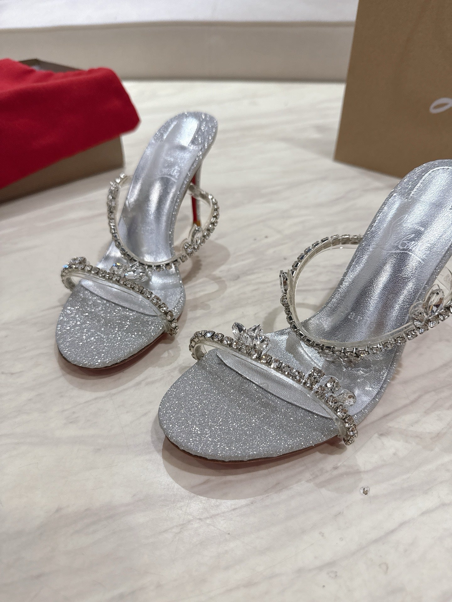 CL 25 Sandals Silver PVC Creo Rhinestones 307509