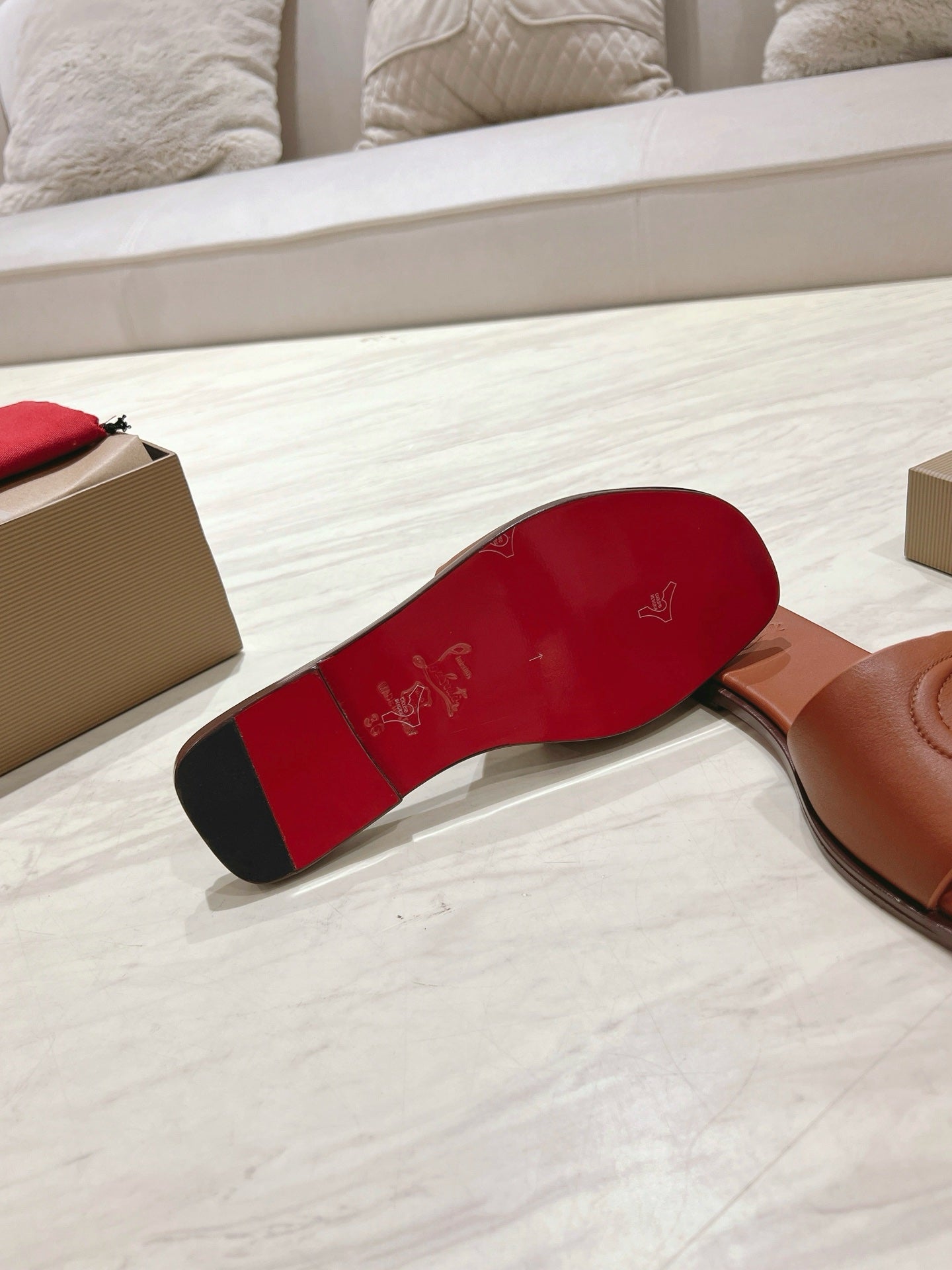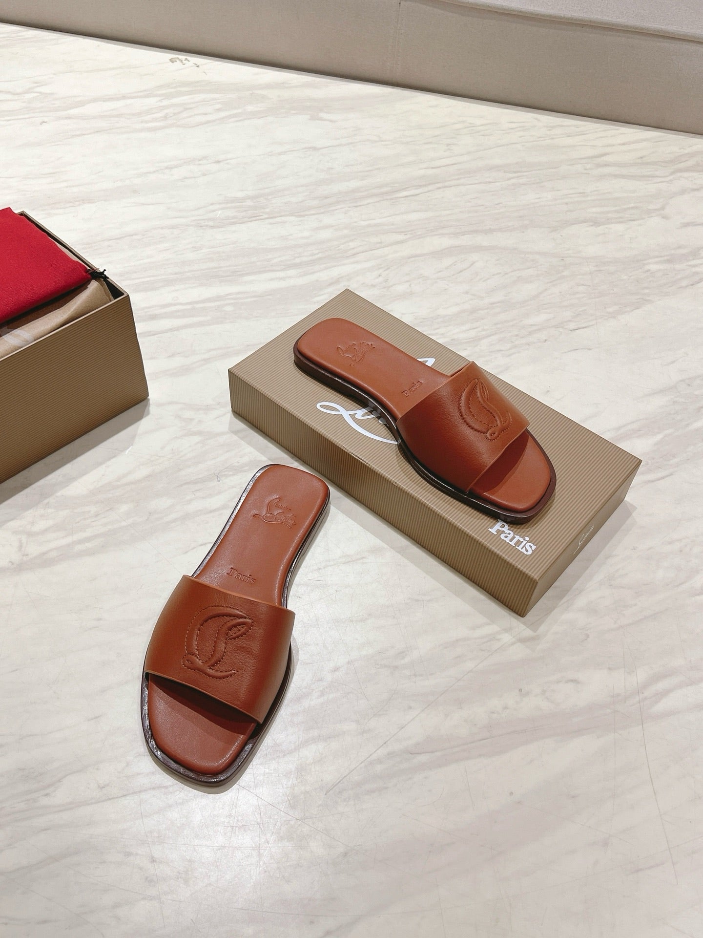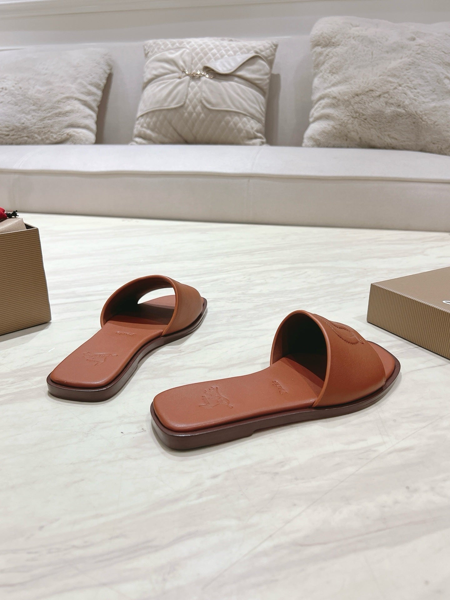 CL 25 Slippers Brown Top Layer High Gloss Calfskin 307502