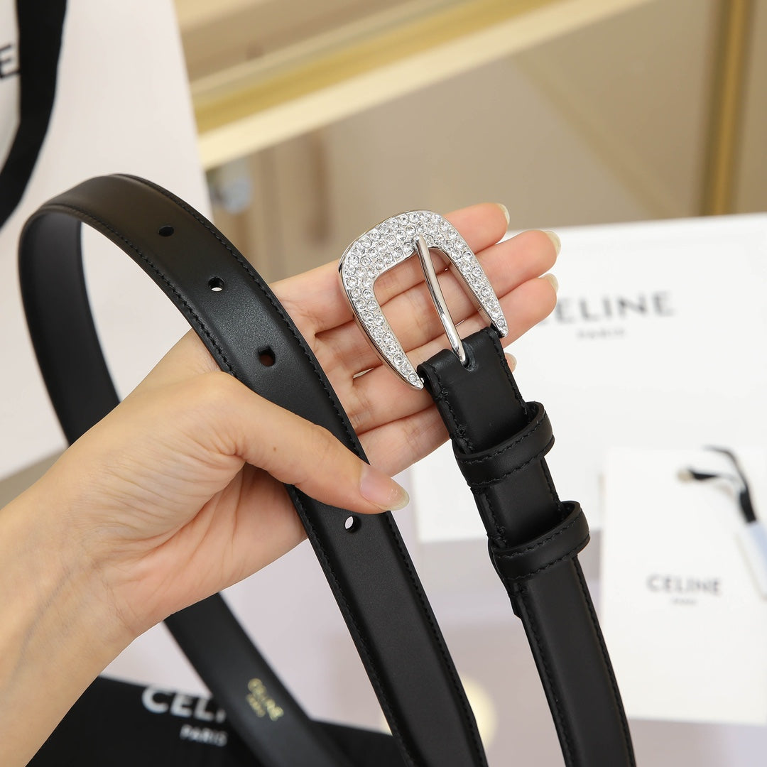 CL MEDIUM 25 MM MARCO BELT WITH STRASS IN BLACK CALFSKIN SILVER HARDWARE