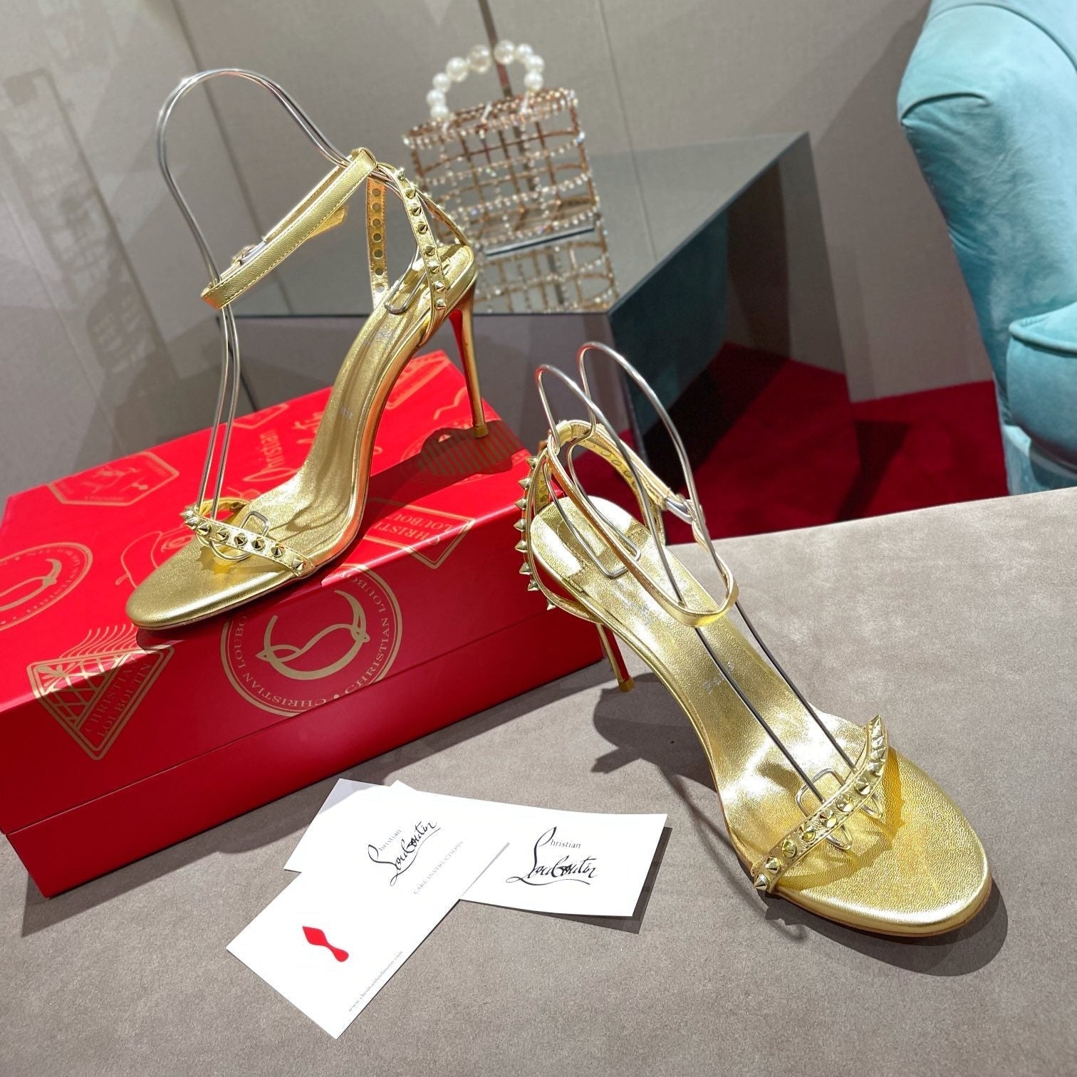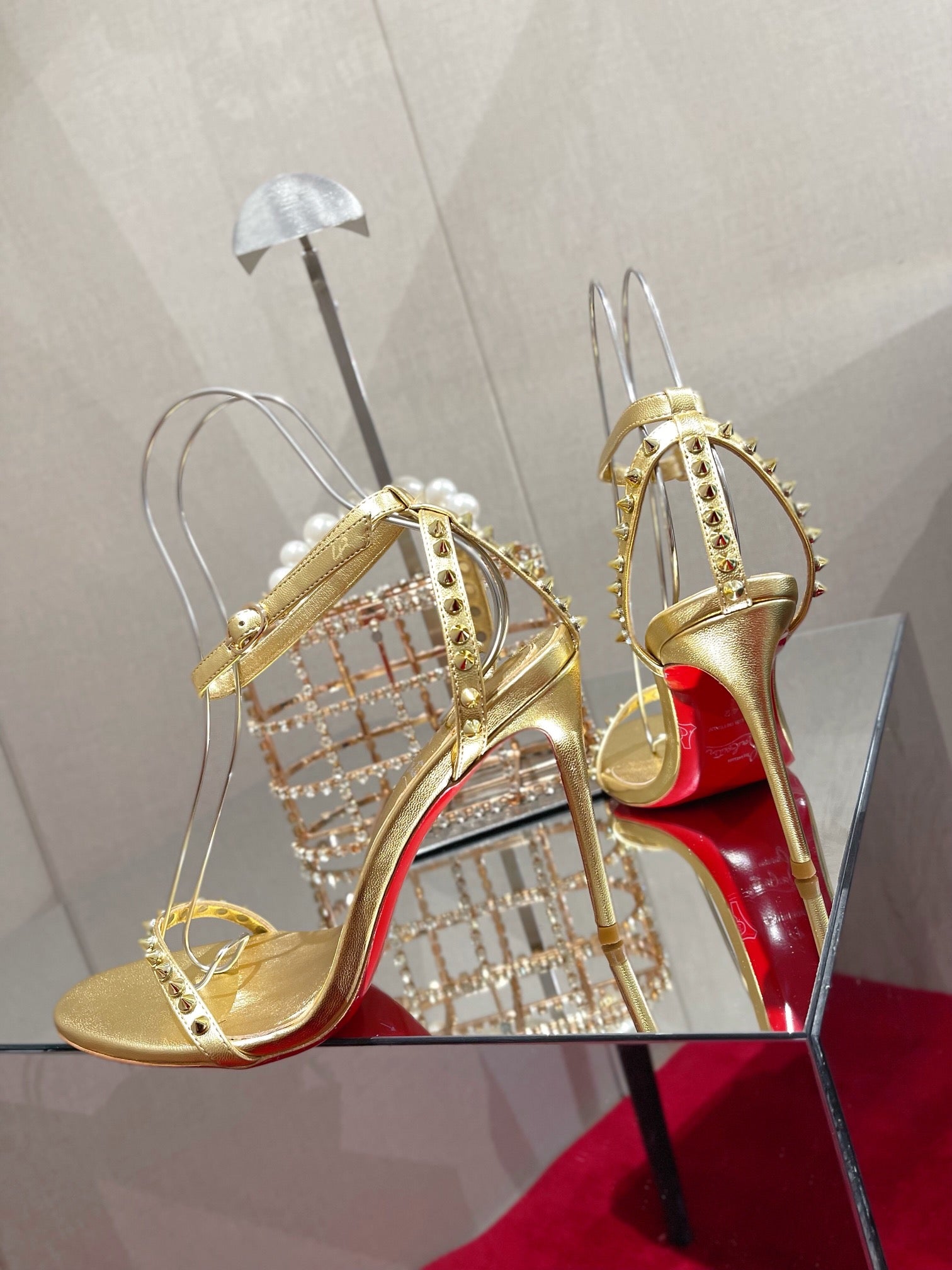CL Spiked Strap Sandals 100mm Gold Leather 346013