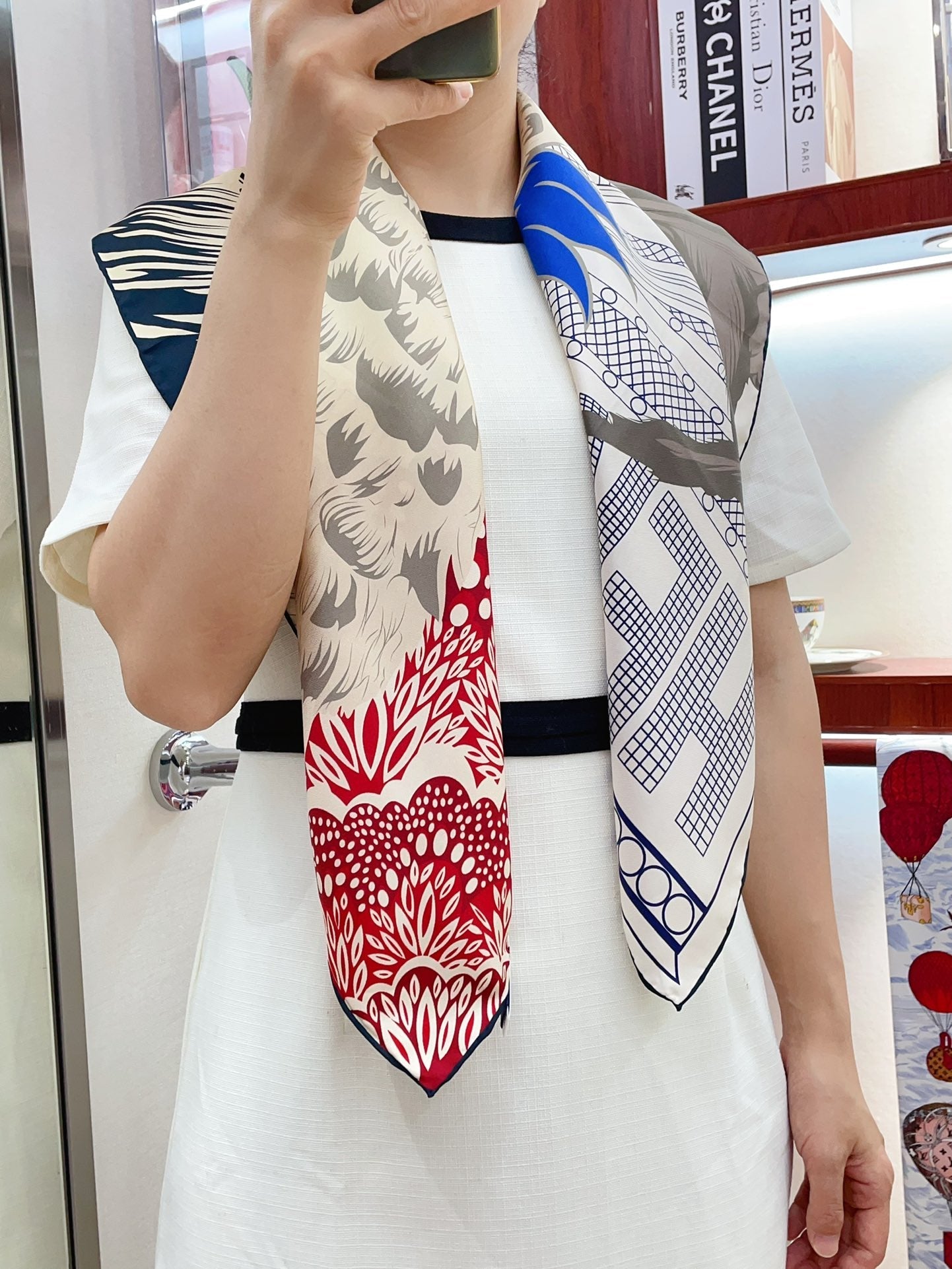 Cocoricooooo! Scarf 90 CM In Red Blue Colorful Silk Twill 348776