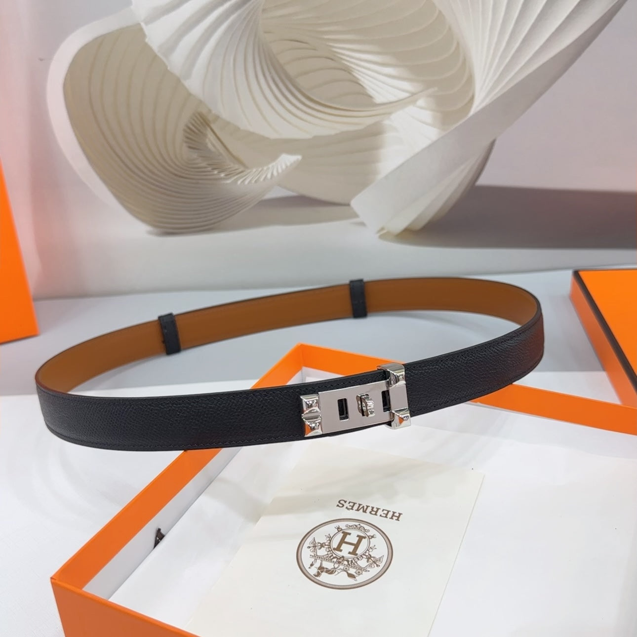 • H Buckle in permabrass plated metal.