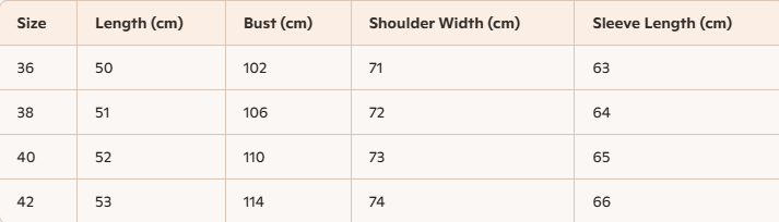 Size: 36, 38, 40, 42