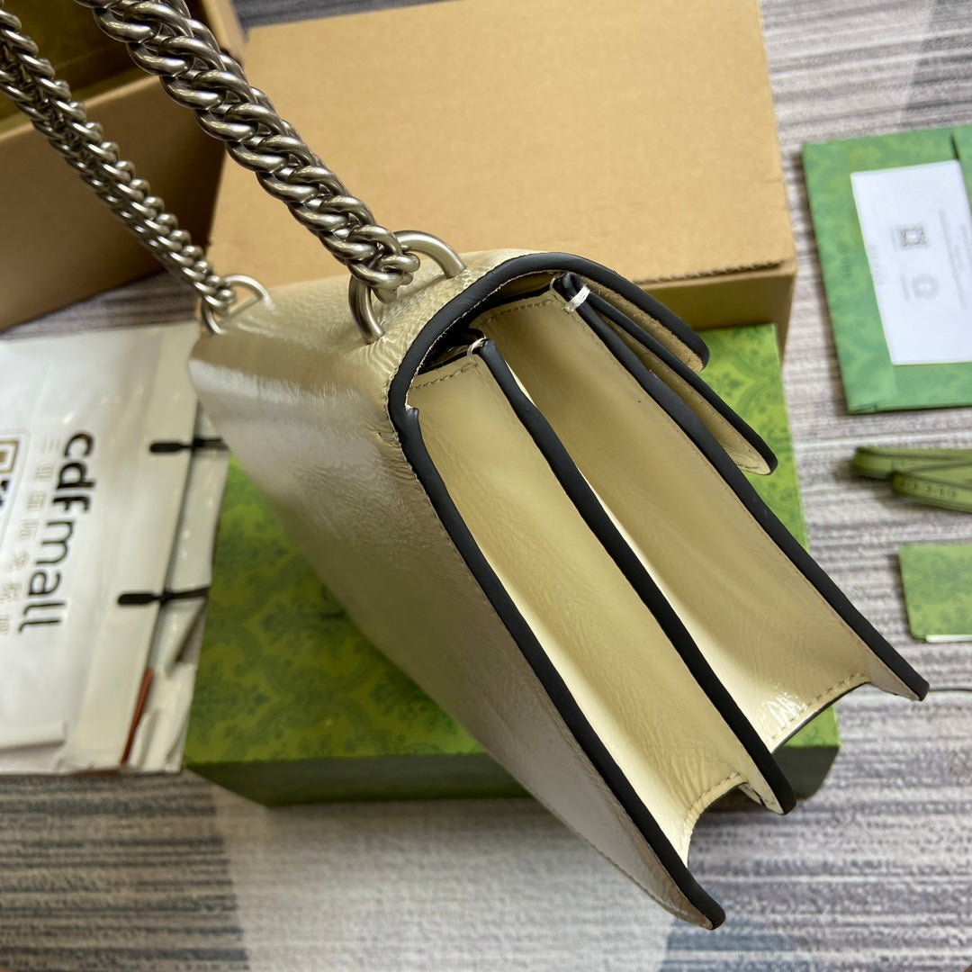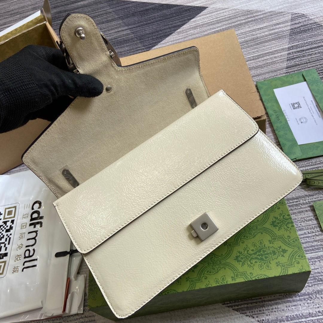 DYONYSUS SMALL SHOULDER BAG 28 IN WHITE LACQUER EMBOSSED CALFSKIN SILVER HARDWARE