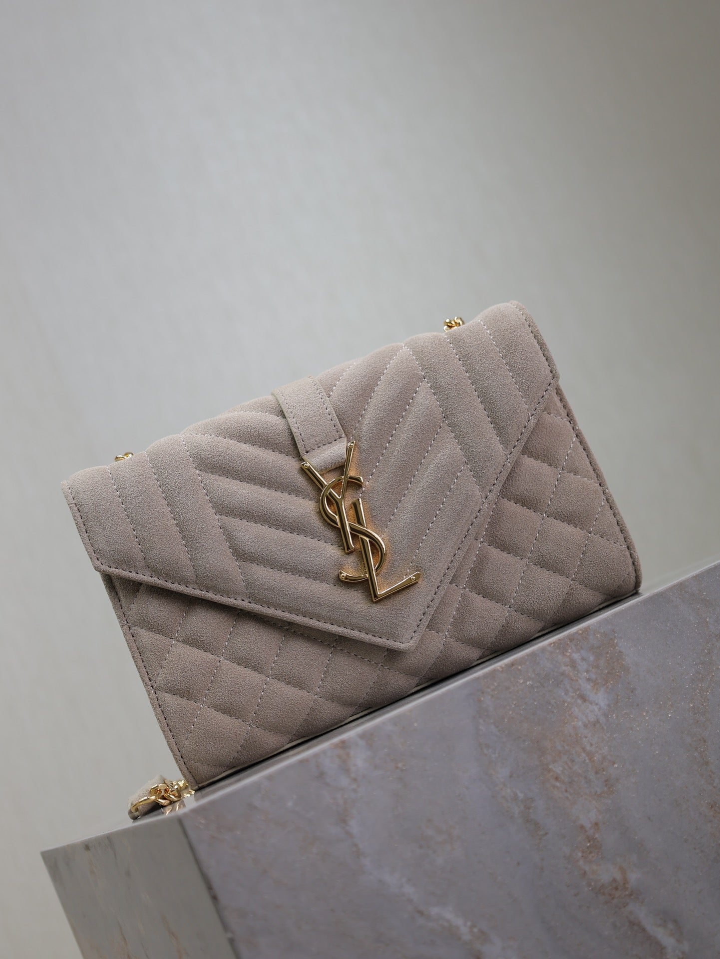 ENVELOPE SMALL CHAIN BAG 22 IN BEIGE SUEDE GOLD HARDWARE