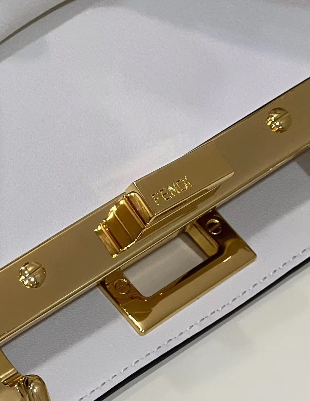 FENDI PEEKABOO MINI 23 BAG IN WHITE CALFSKIN WITH GOLD HARDWARE