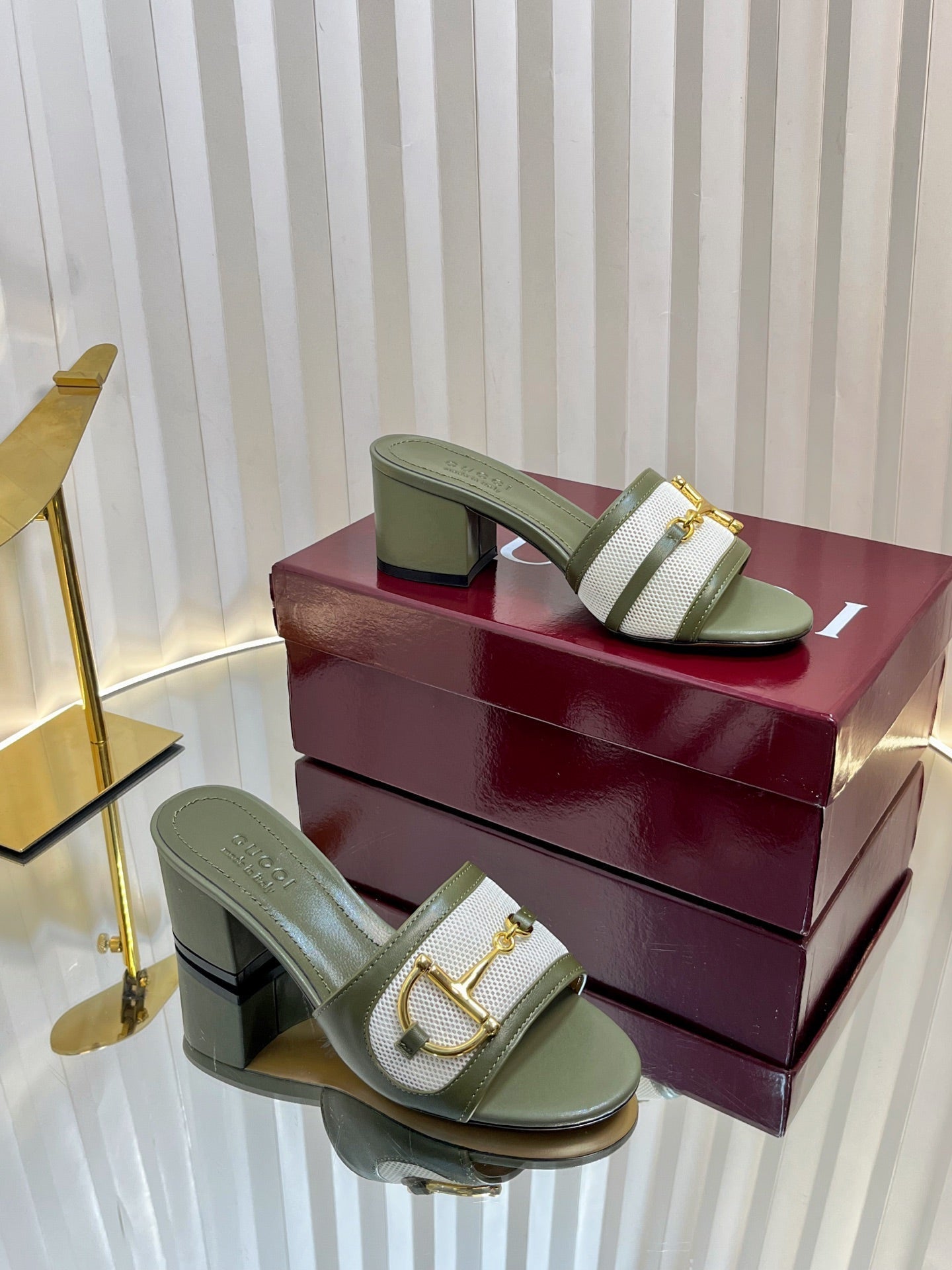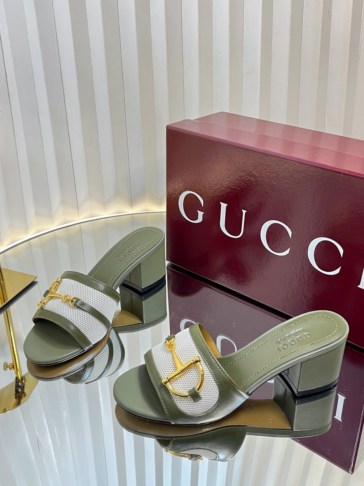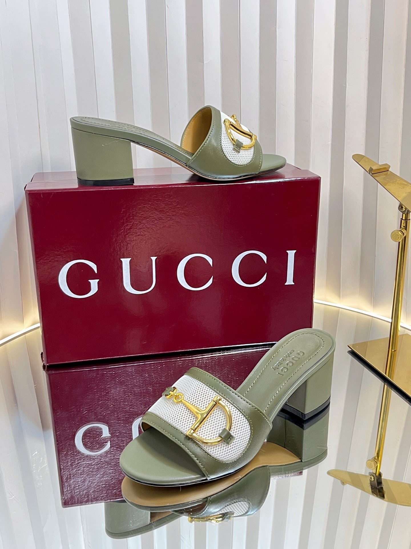 GC 25 Horsebit GG 50mm Sandals Dark Green Canvas Sheepskin 294667