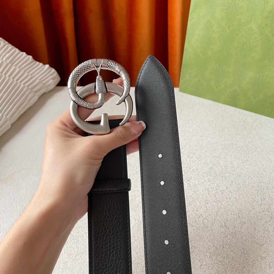 GG BELT DOUBLE G SERPENTI BUCKLE BLACK LEATHER
