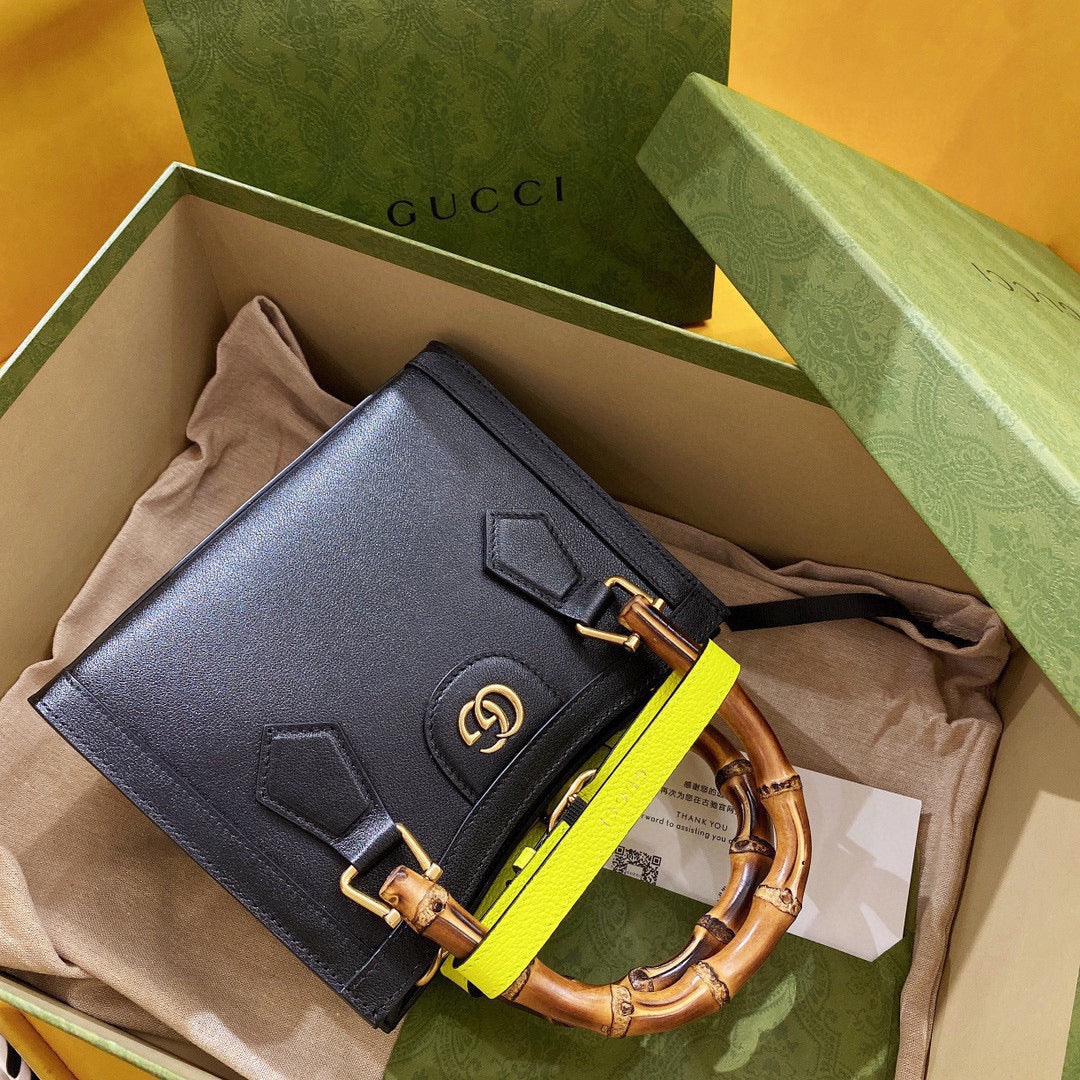 GG Diana Mini 20 Black Textured-Leather Tote Bag