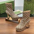 GG HIGH SANDAL 11.5 CM IN CAMEL BROWN MONOGRAM JACQUARD FABRIC