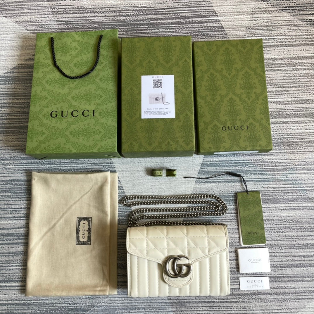 GG MARMONT MINI 20 SHOULDER BAG IN WHITE CALFSKIN