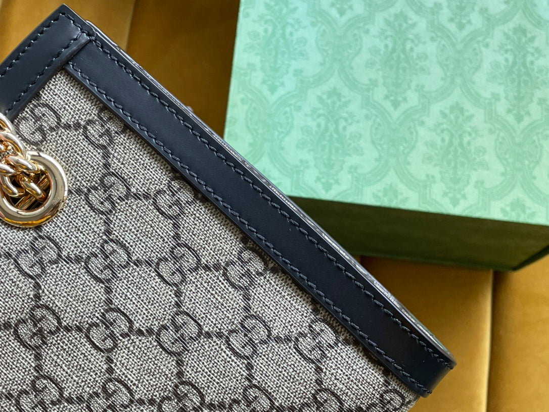 GG PADLOCK MEDIUM 26 SHOULDER BAG BEIGE CANVAS AND BLACK CALFSKIN
