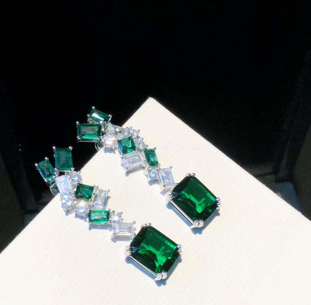 GRA GREEN SILVER DIAMOND EARRINGS