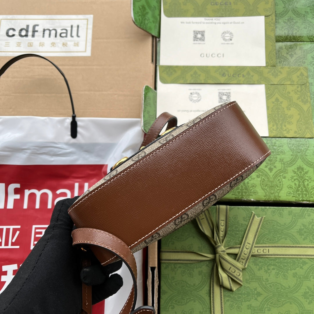 Gucci Horsebit 1995 Small Bag Brown mix Beige Leather 240125