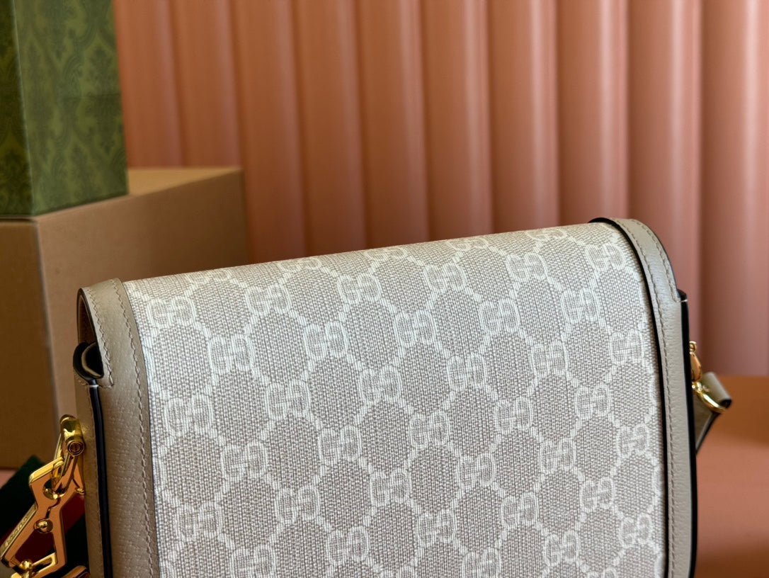 Gucci Horsebit 20.5 Bag Beige mix White Leather Canvas 244257