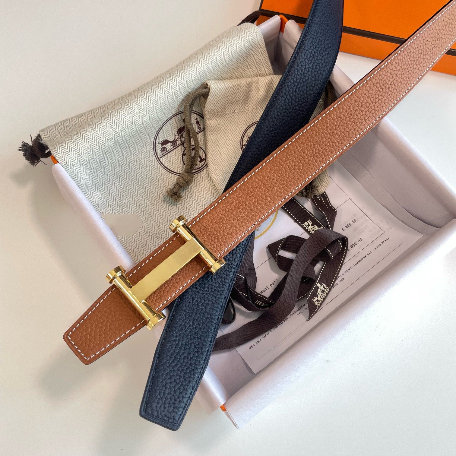 H AGORA BELT 32MM DARK BLUE BROWN LEATHER