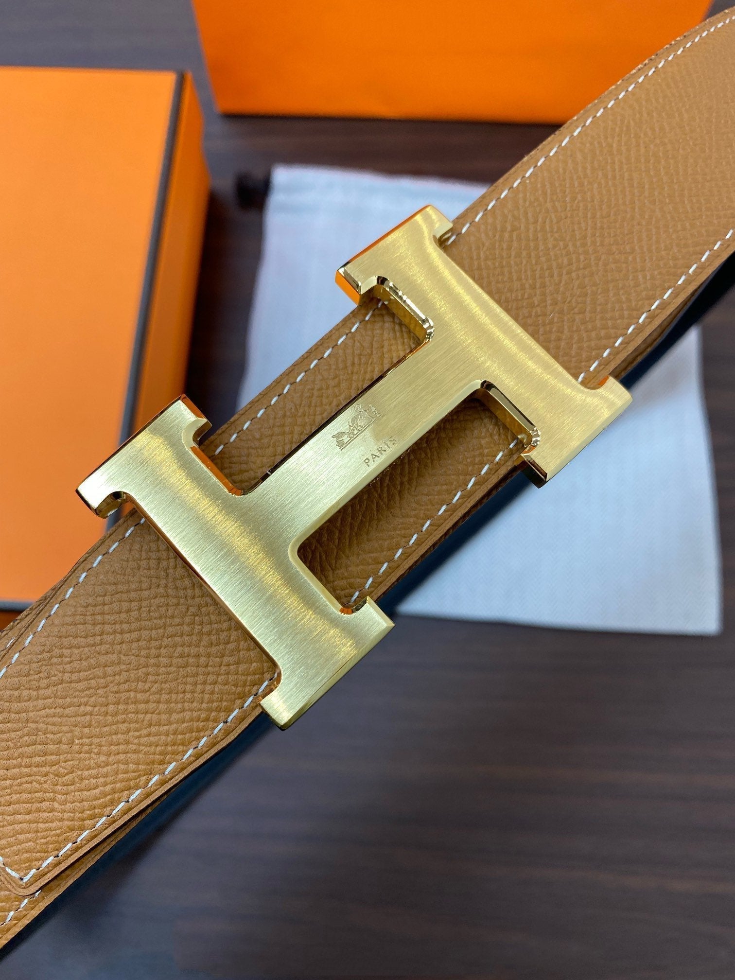 • H Buckle in permabrass plated metal.