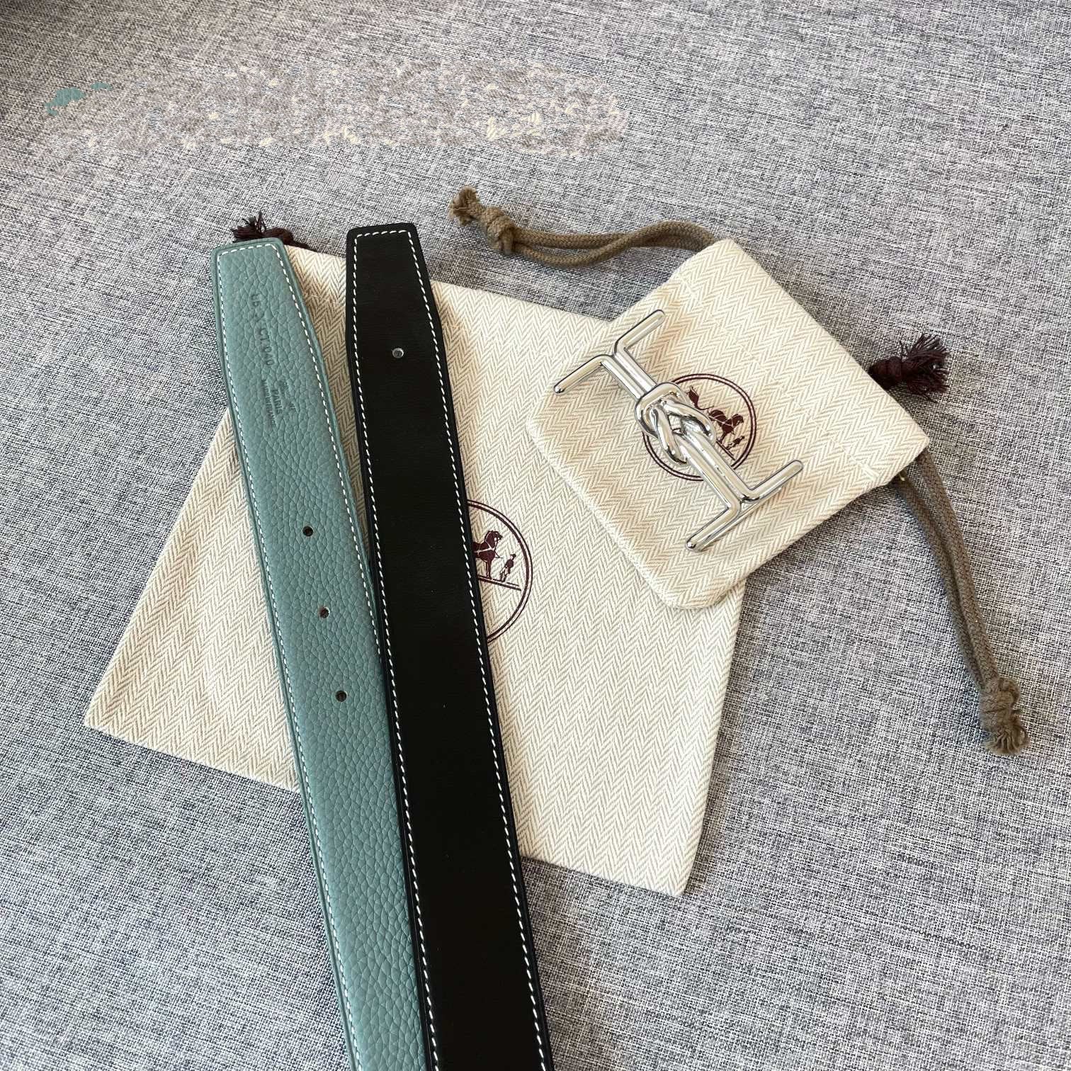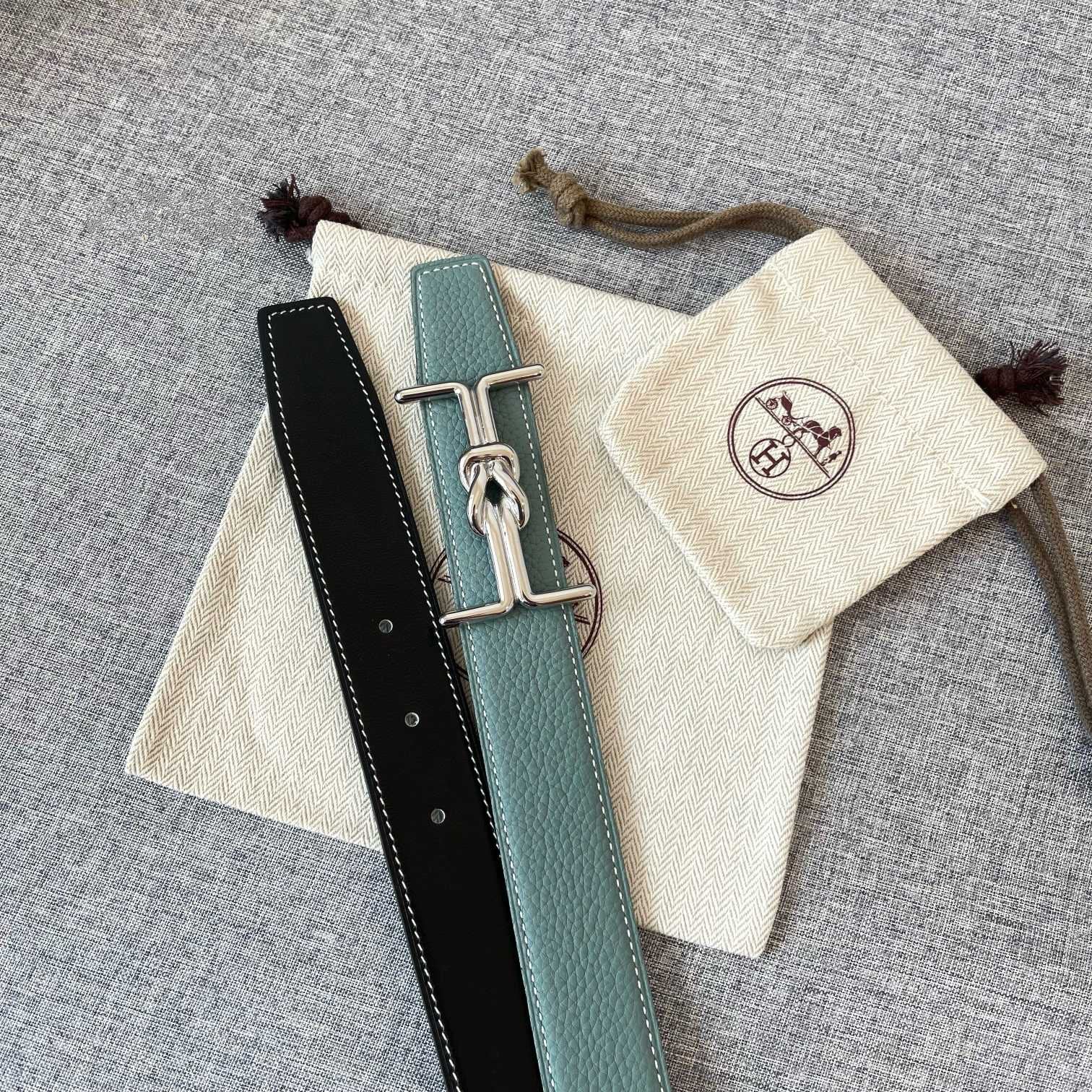 H MARIN REVERSIBLE BELT 32MM SILVER BUCKLE SKY BLUE BLACK LEATHER