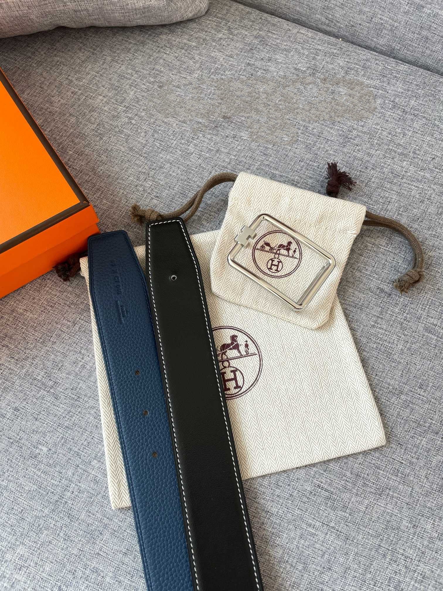 H TUBE BELT 38MM SILVER BUCKLE BLUE BLACK LEATHER