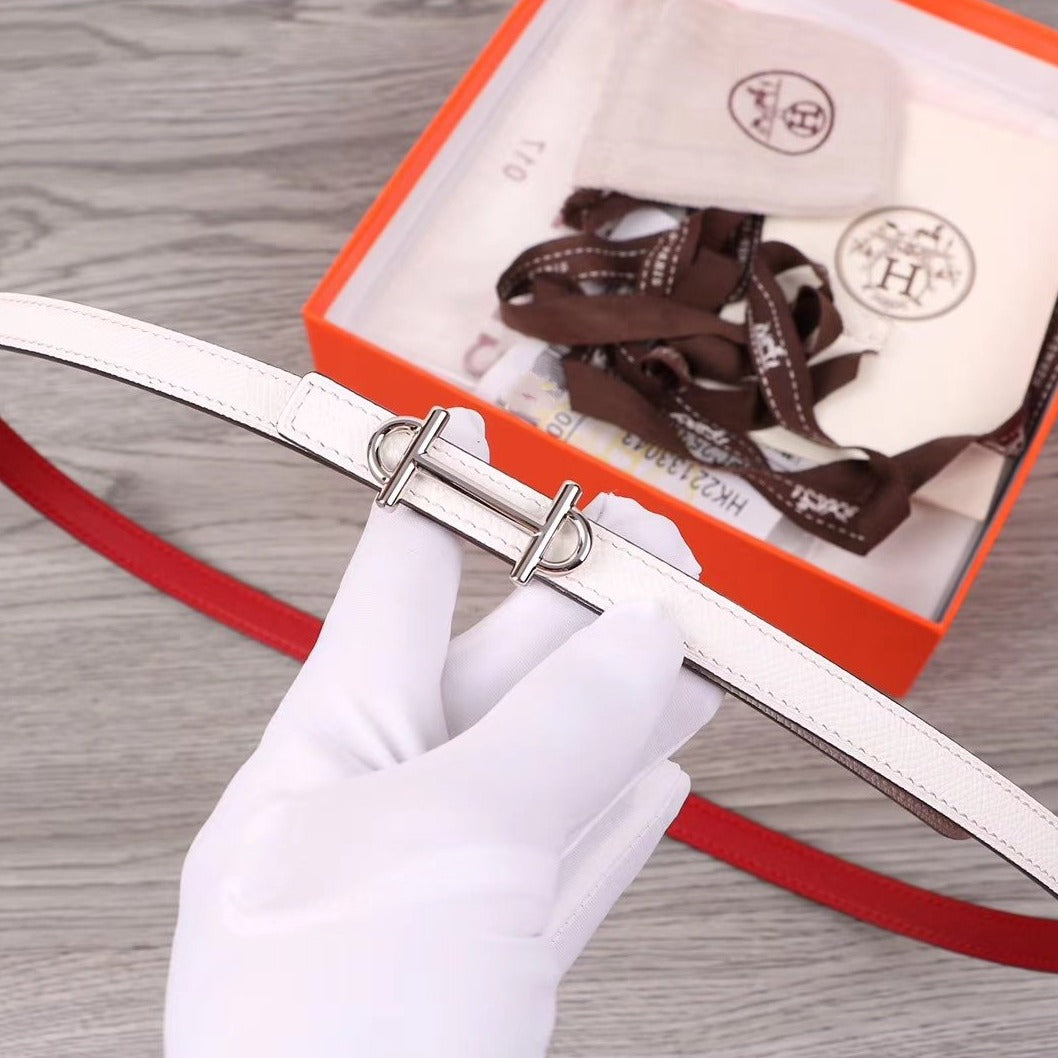 H WOMEN'S BELT 13MM SILVER BUCKLE RED WHITE LEATHER