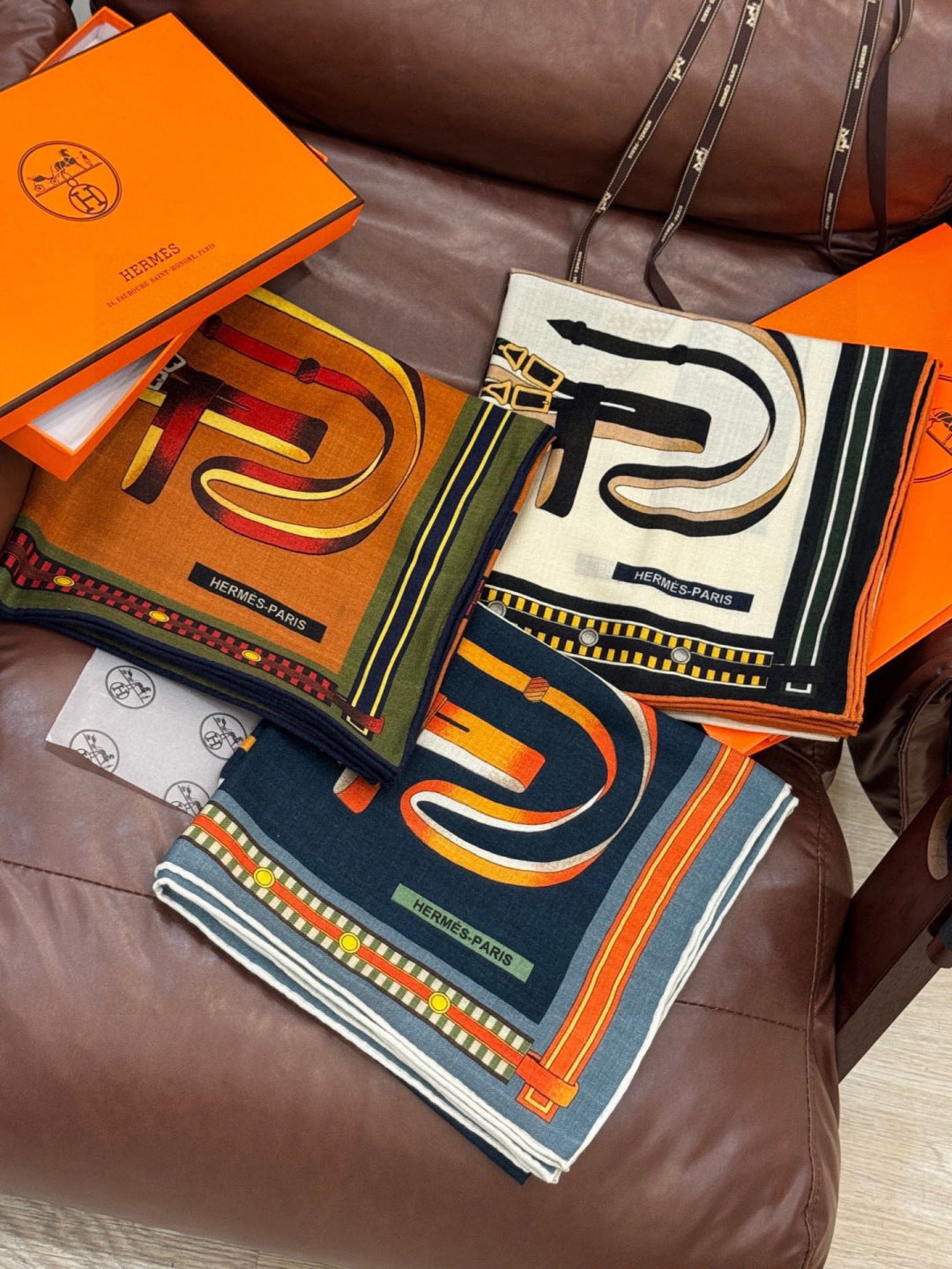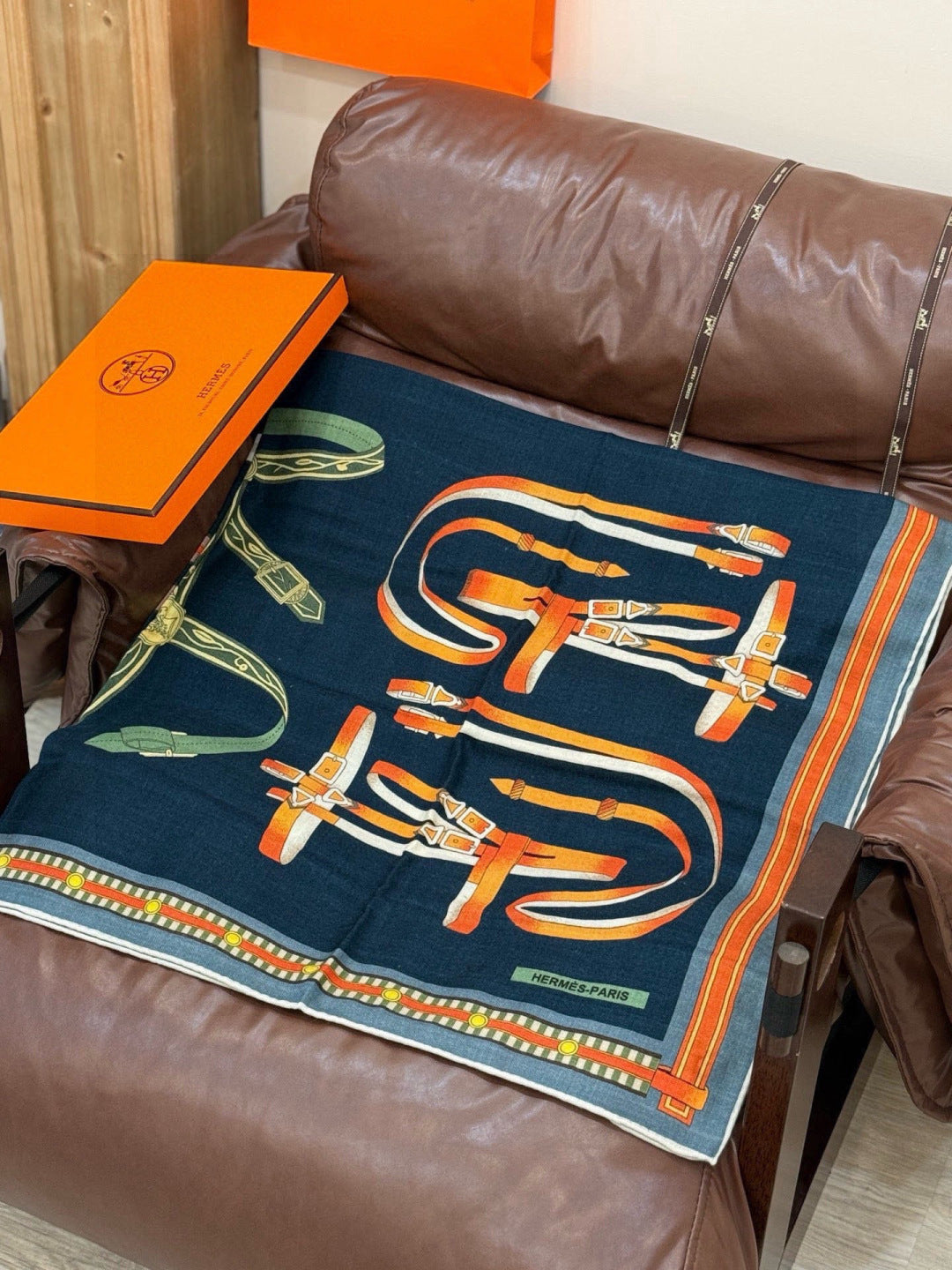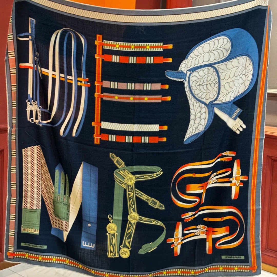 HM 25s Equestrianism Scarf 140cm Navy Blue Cashmere Silk 970961