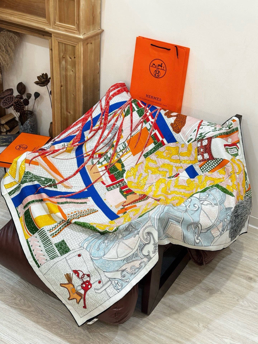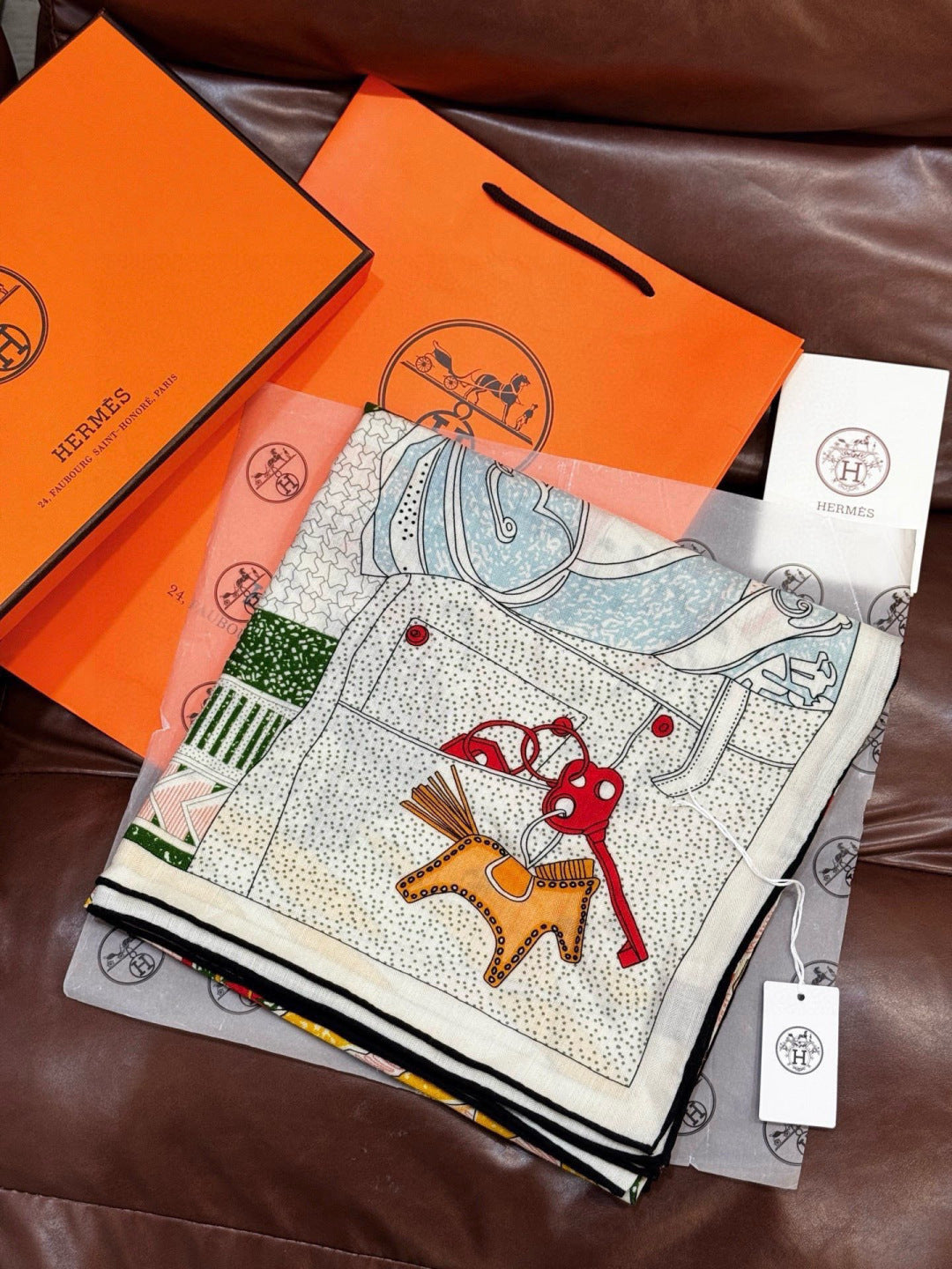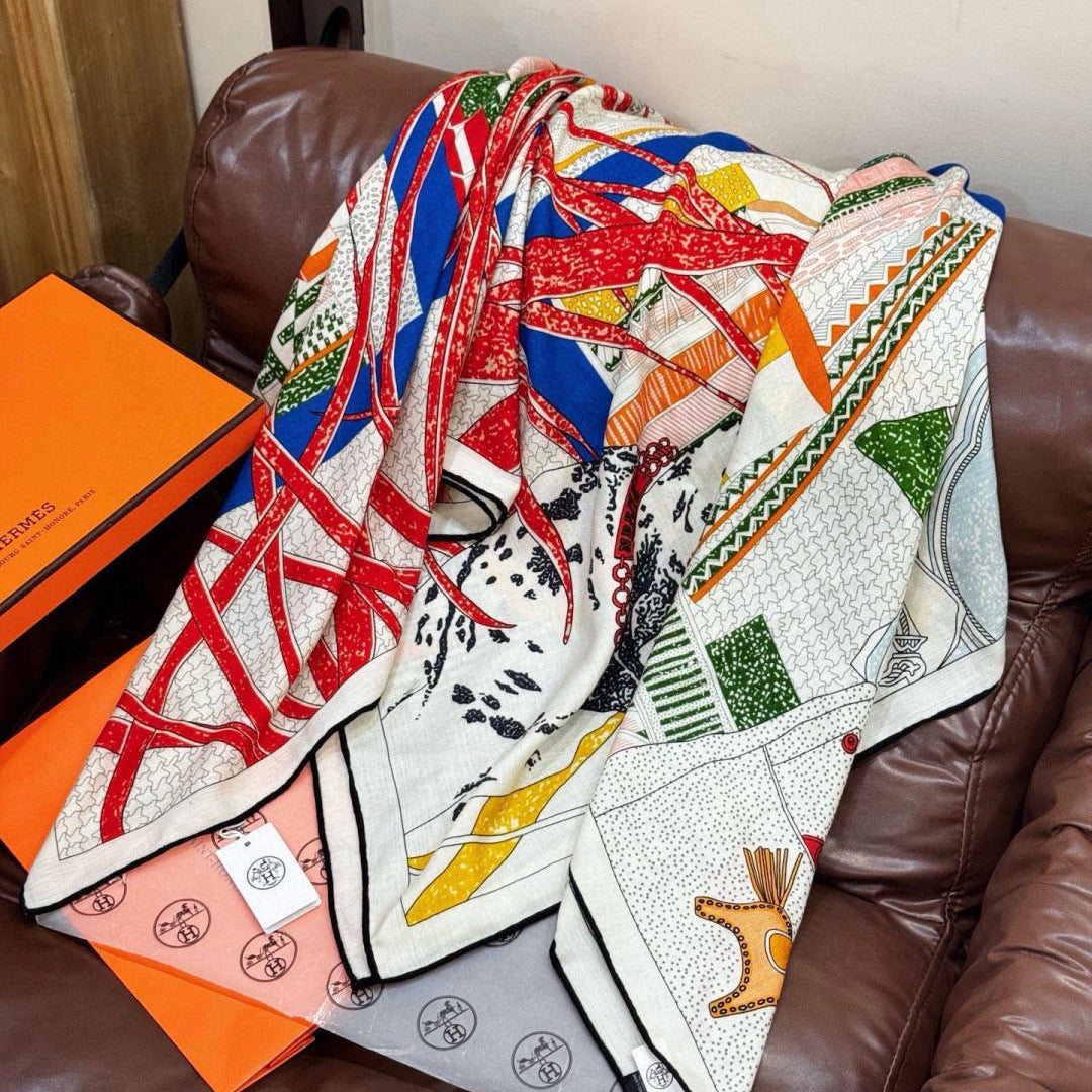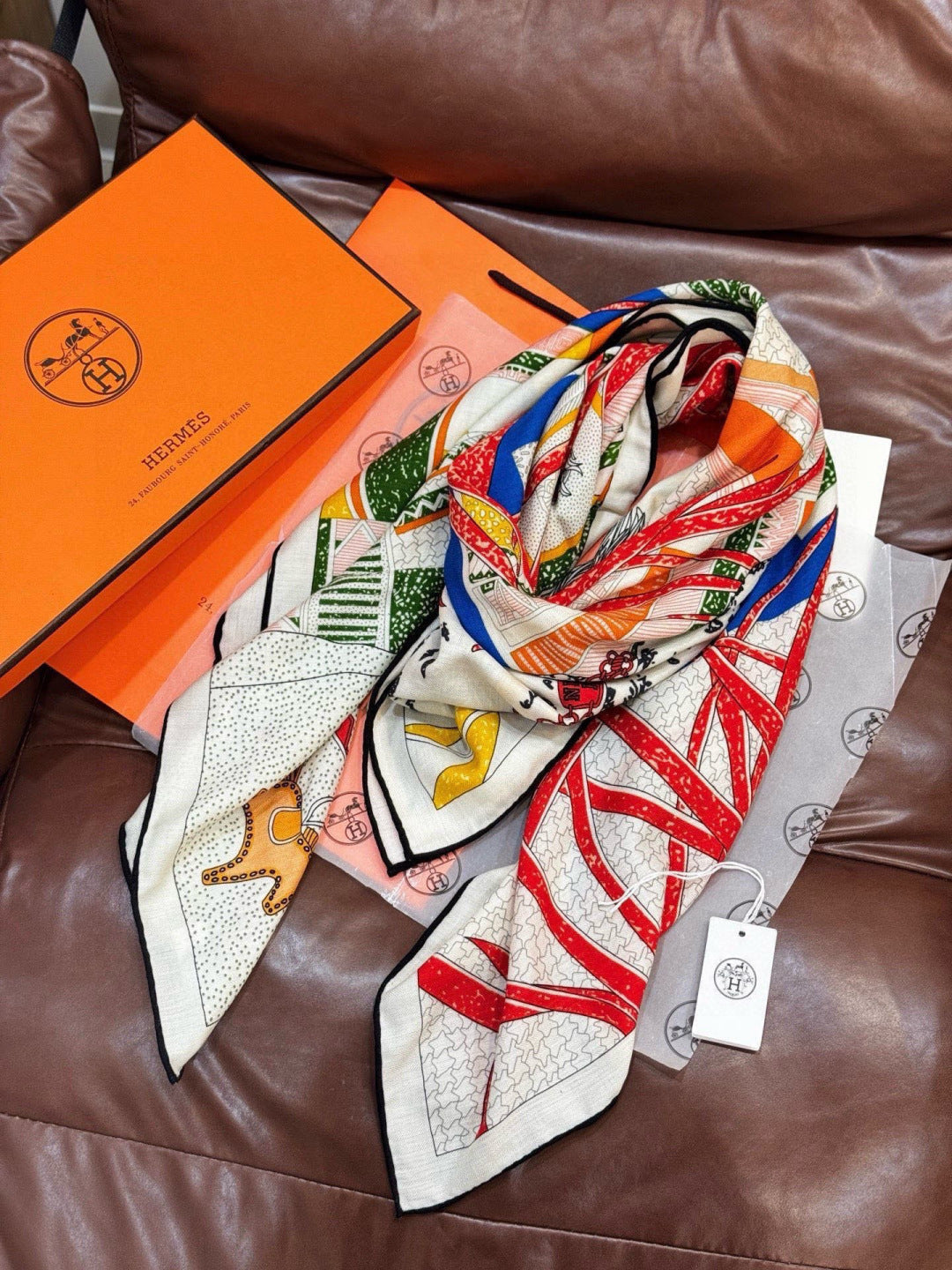 HM 25s Essential Scarf 140cm Red Colorful Cashmere Silk 967422
