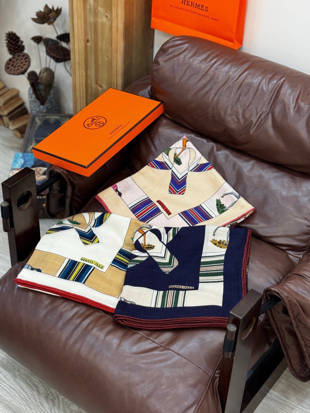 HM 25s Golden Spurs Scarf 140cm Beige Blue Cashmere 976284