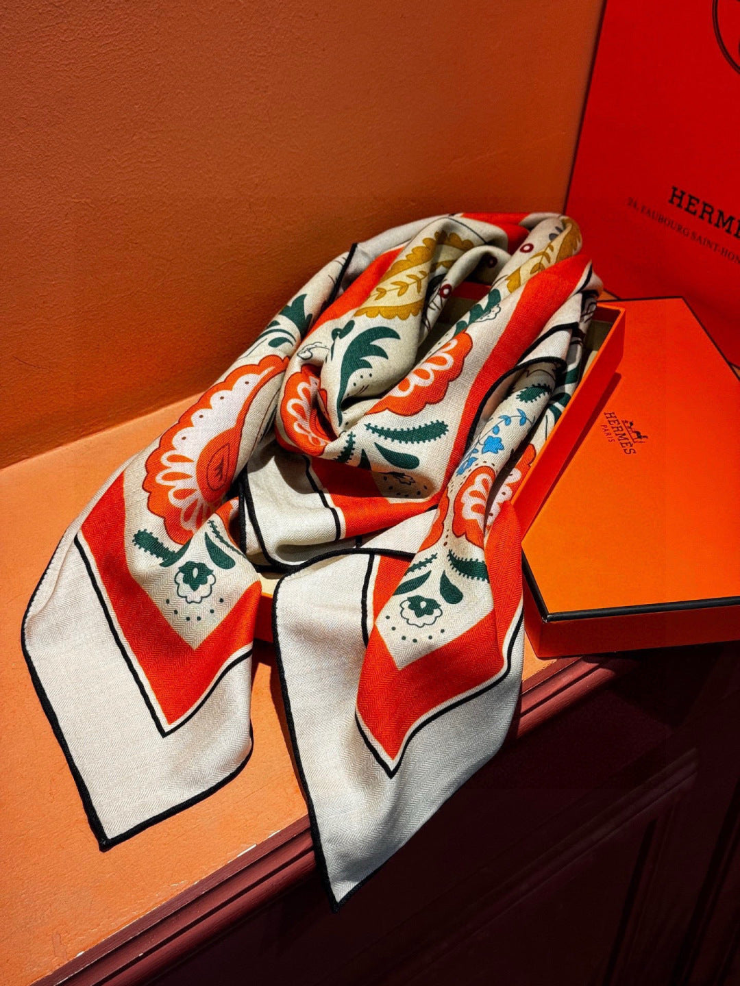 HM 25s Jungle Love Scarf 140cm Orange Beige Cashmere 976287