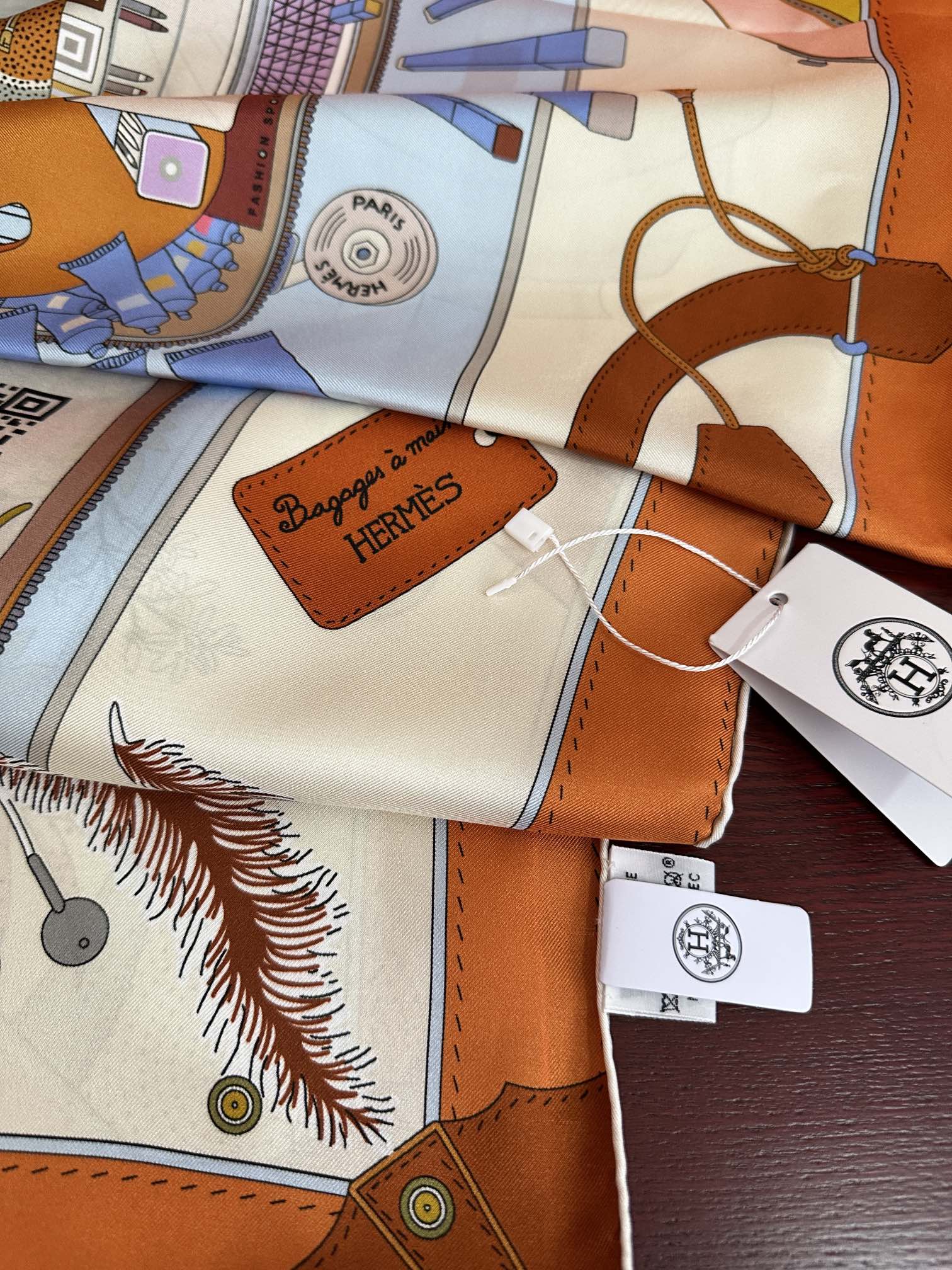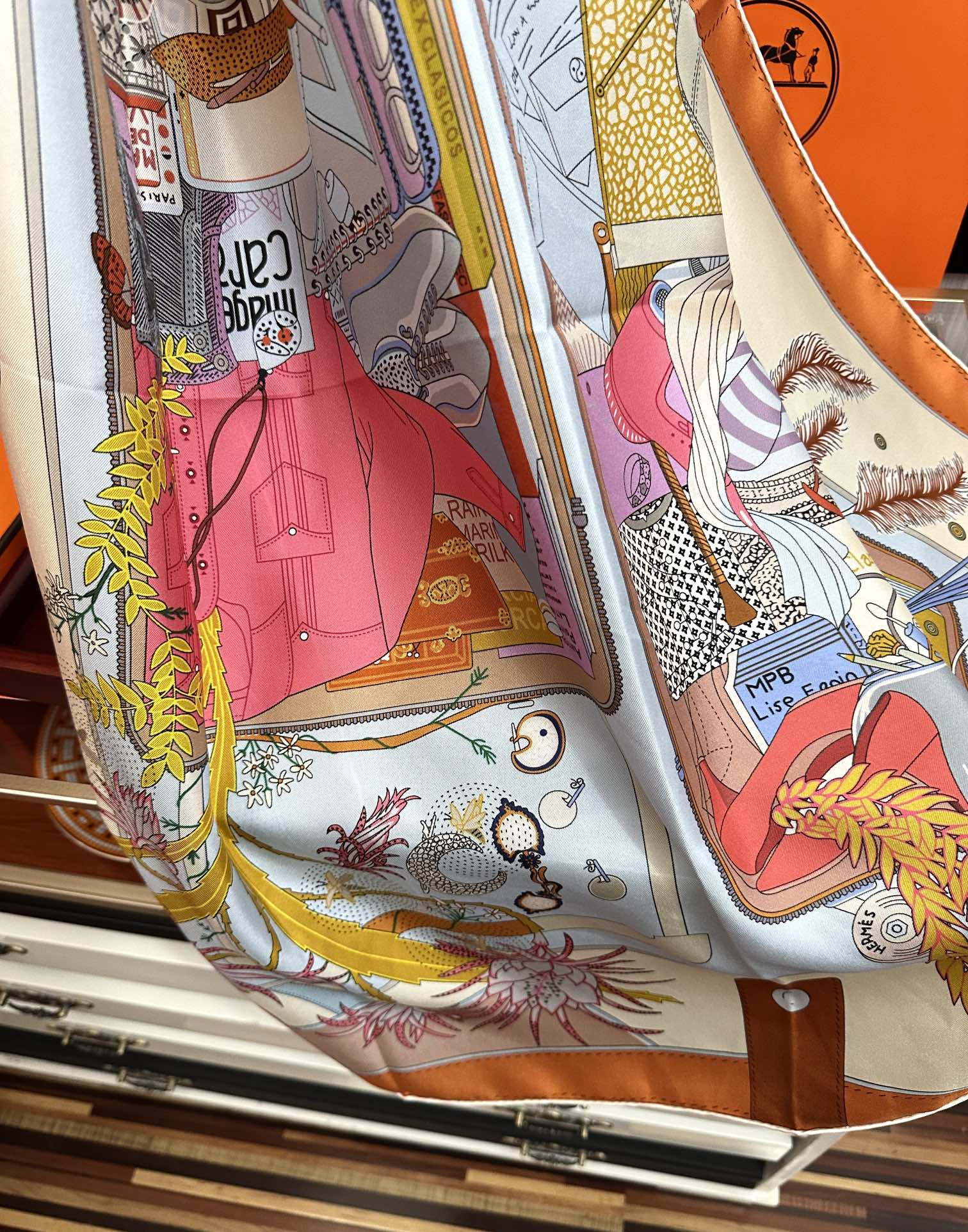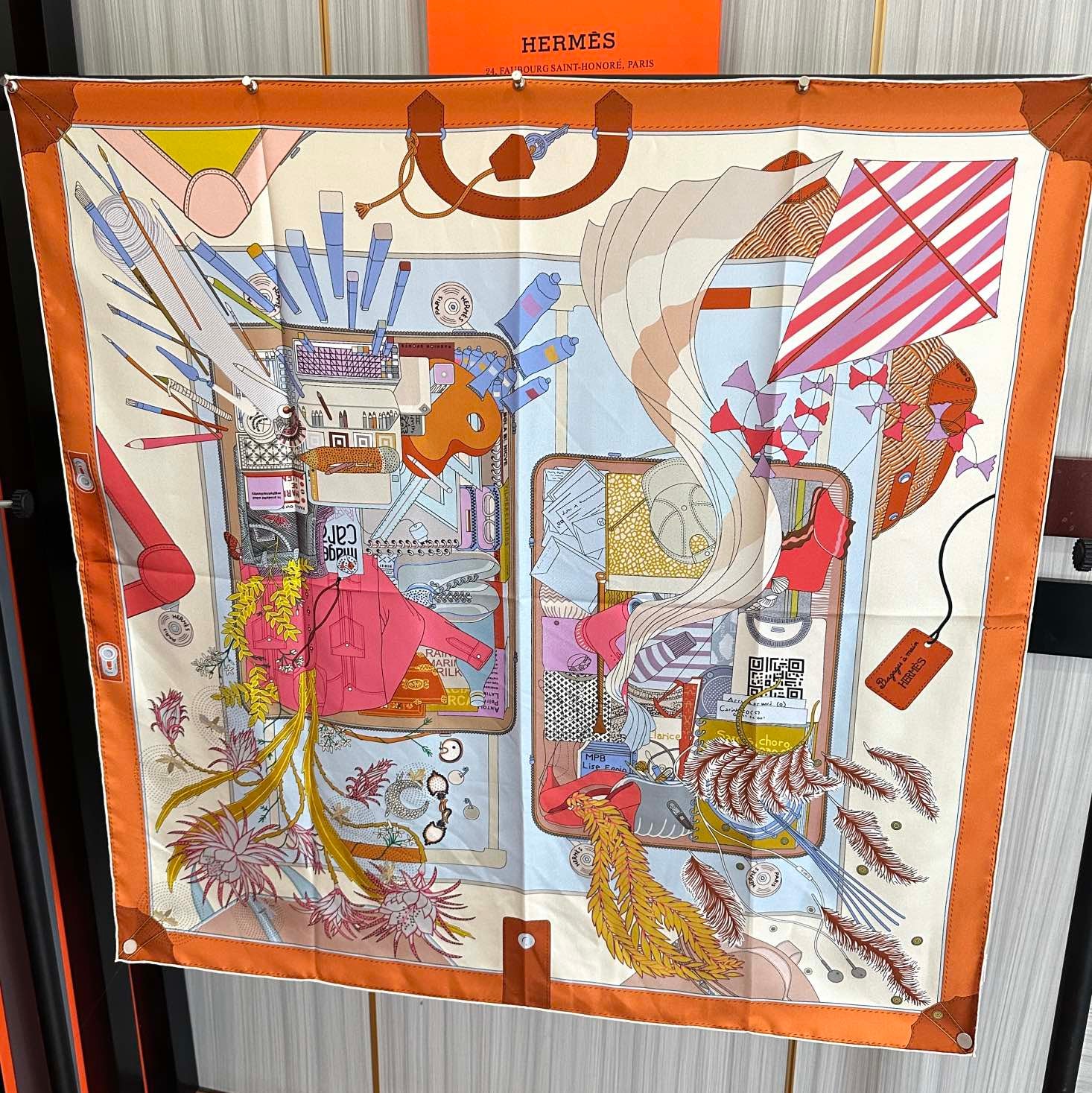 HM 25s Major Scarf 90cm Orange Colorful Cashmere 972934