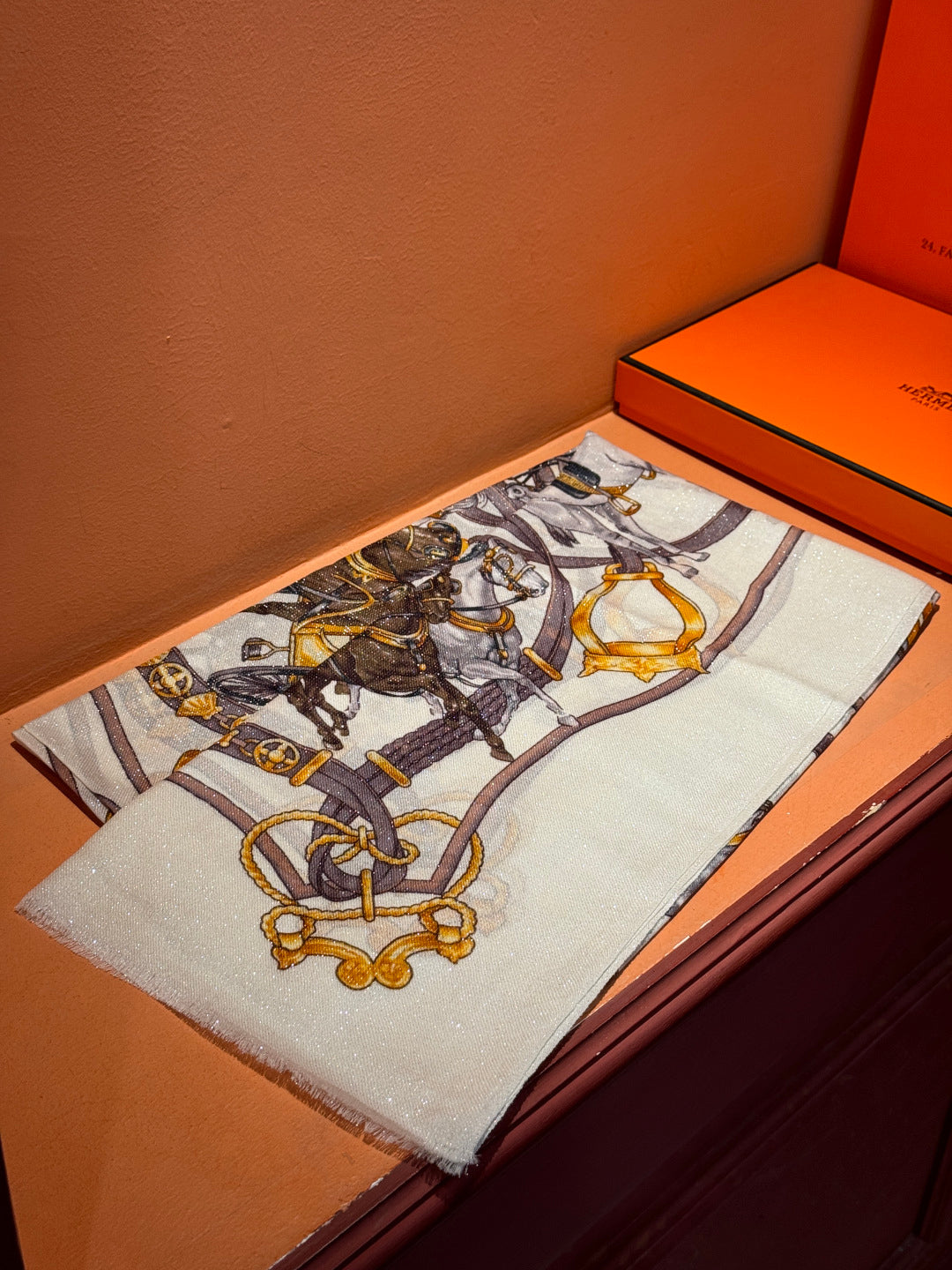 HM 25s Radiant Scarf 200cm White Purple Brown Cashmere Silk 962394