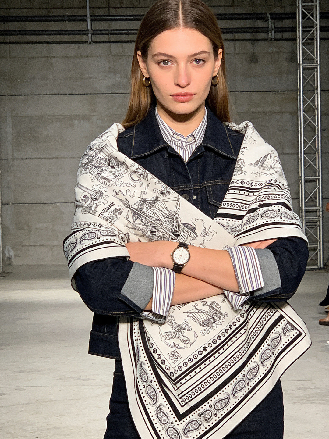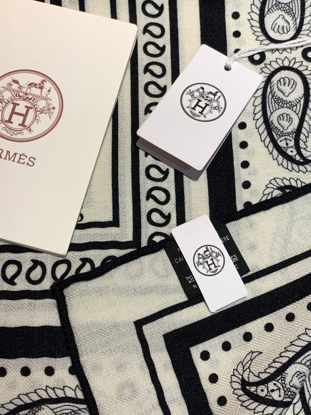 HM 25s Sailor Tattoo Scarf 140cm White Black Cashmere Silk 967419