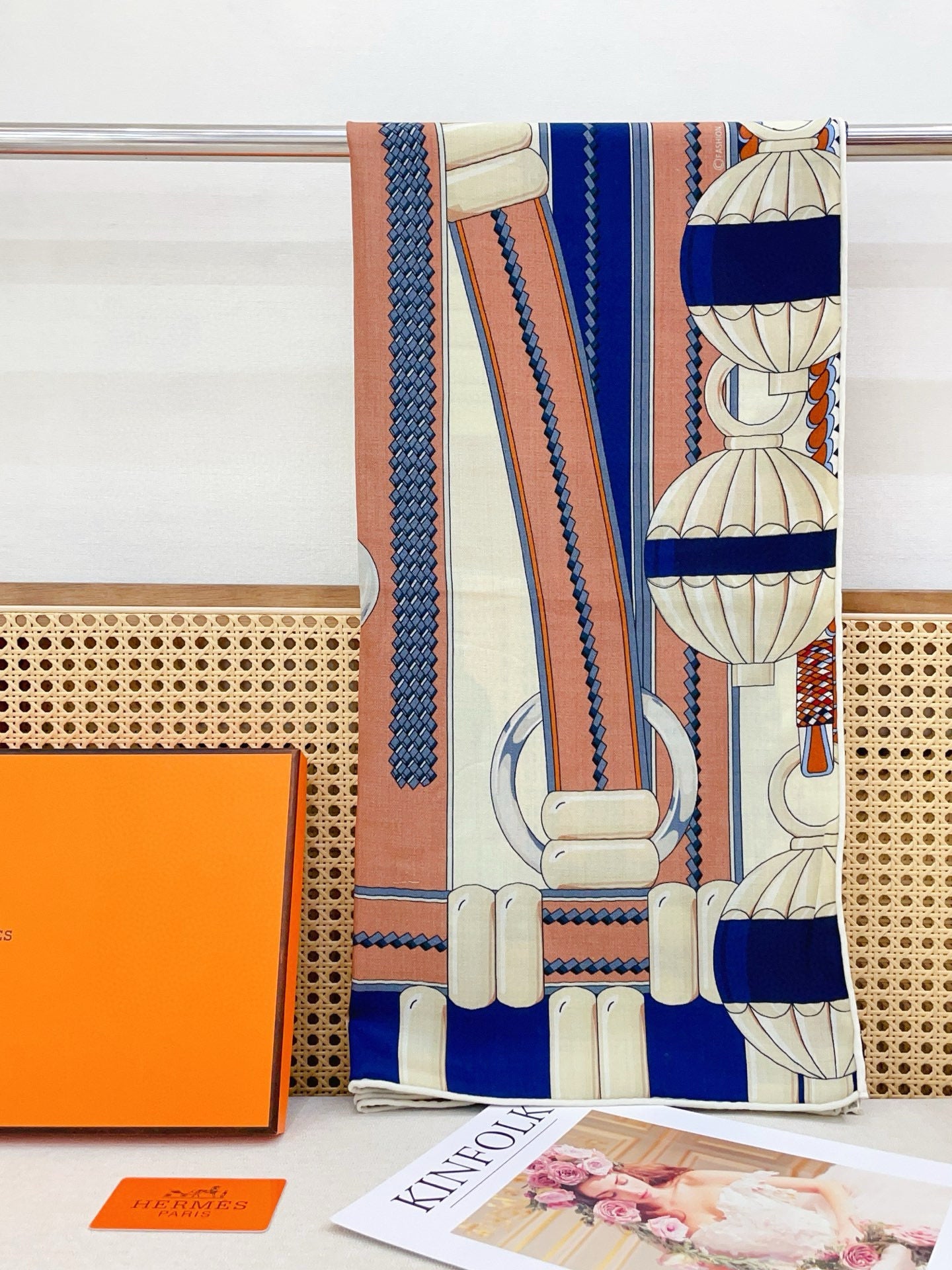 HM 25s Scarf 140cm Brown Blue Beige Cashmere 973323