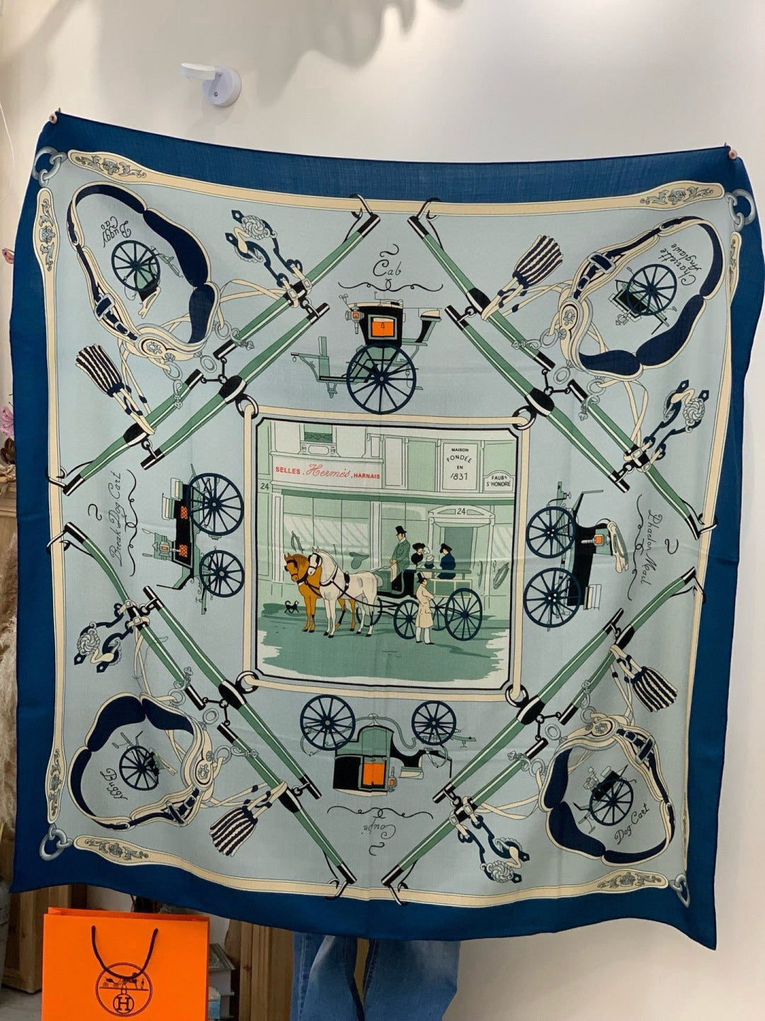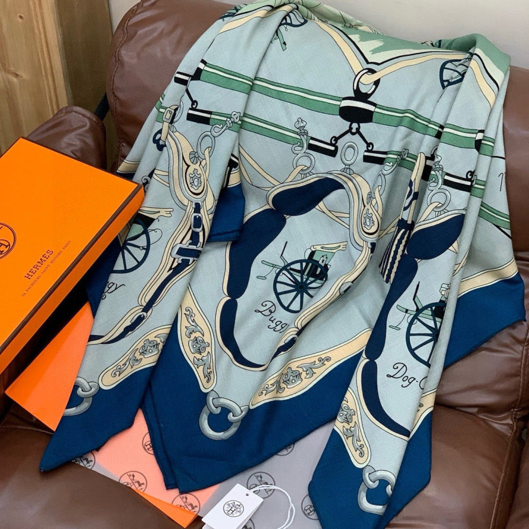 HM 25s The King Scarf 140cm Blue Colorful Cashmere 973052