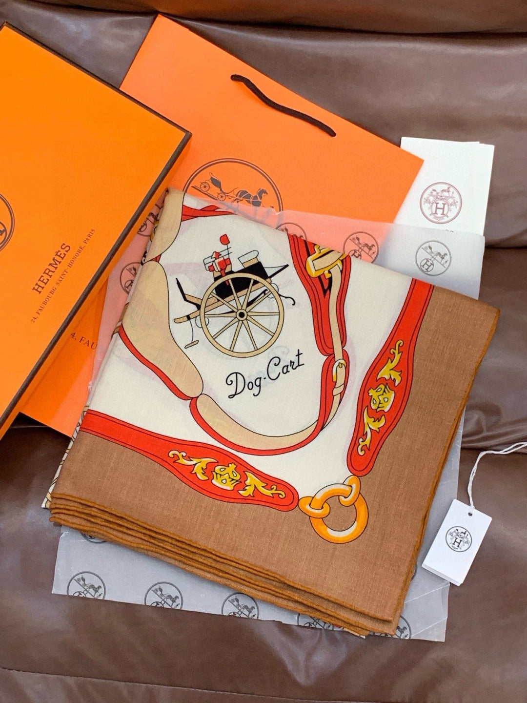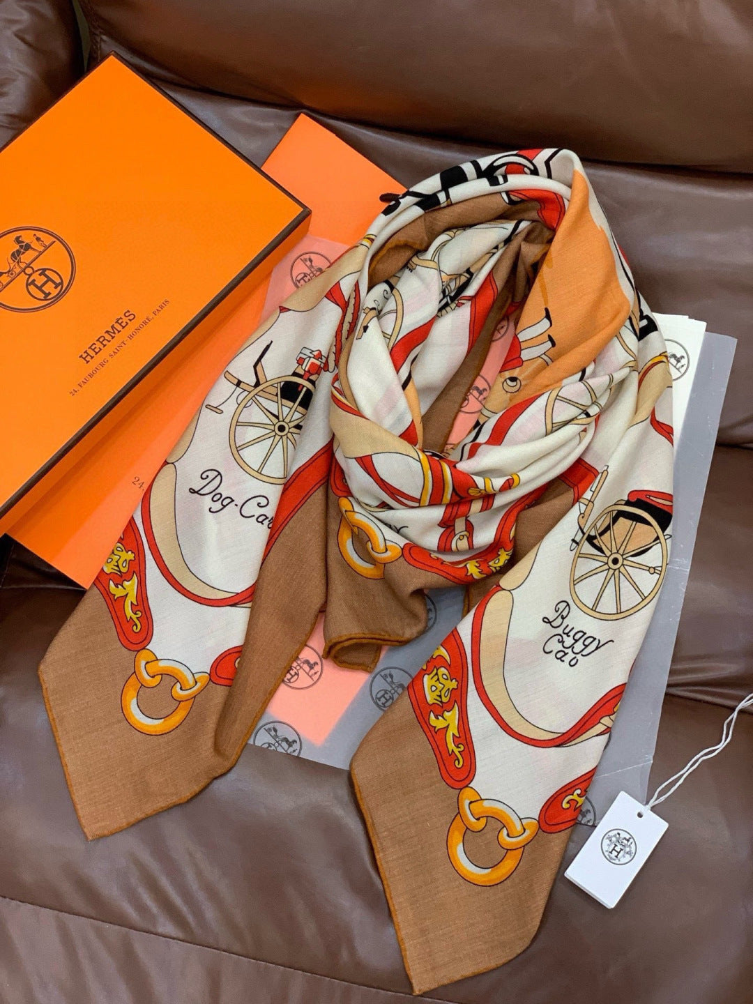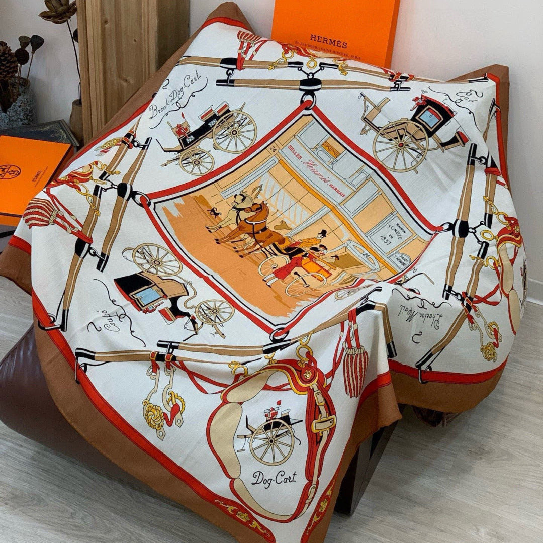 HM 25s The King Scarf 140cm White Brown Cashmere 973049