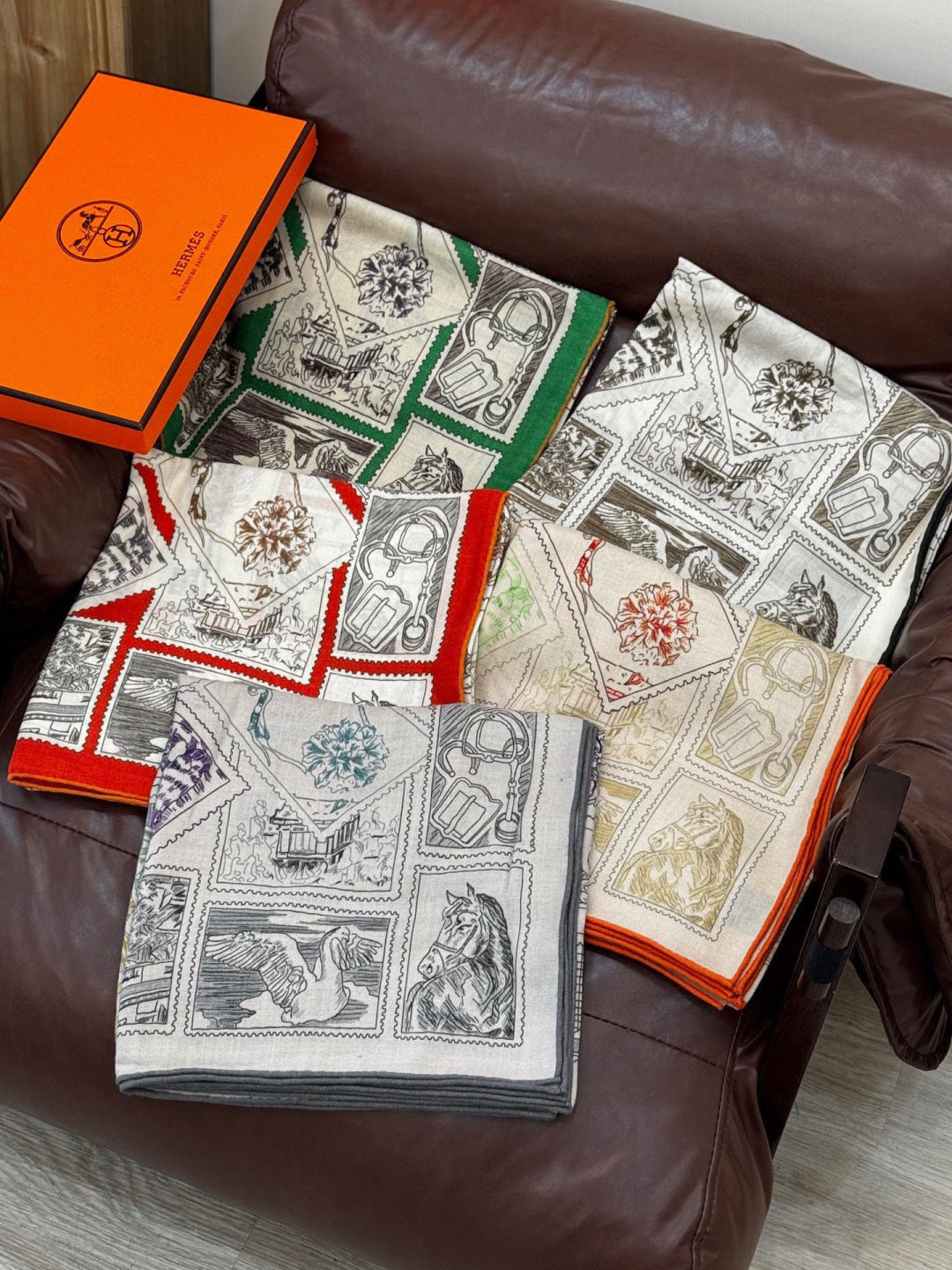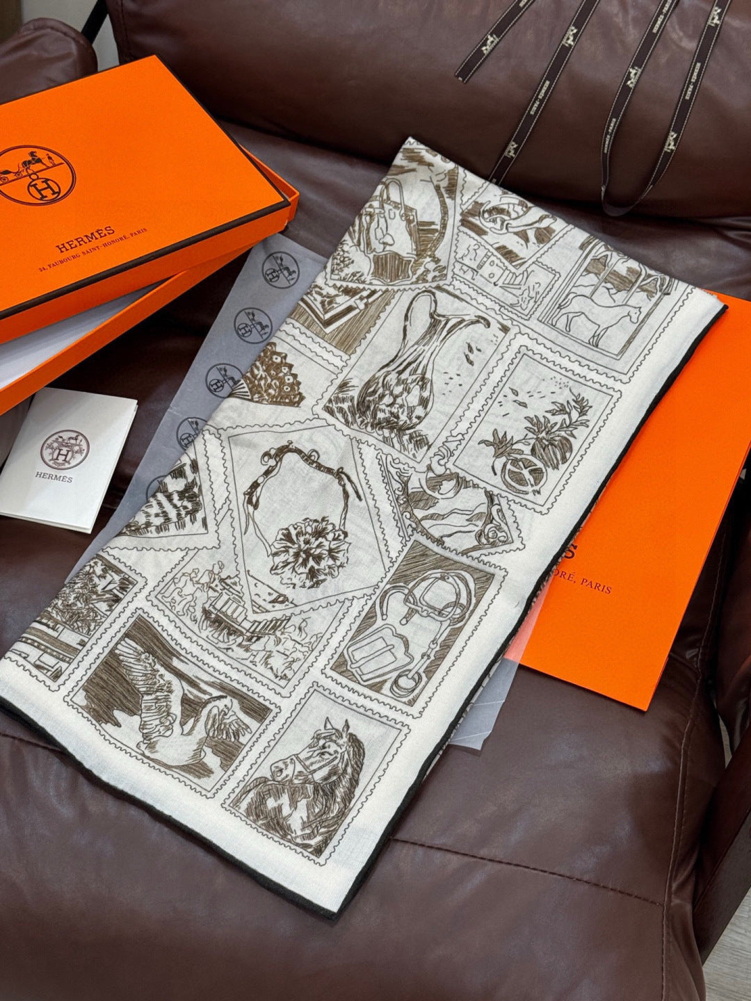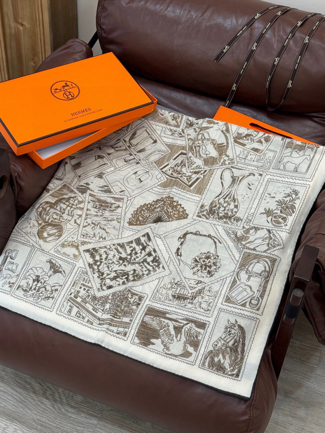 HM 25s Velvet Square Scarf 140cm Light Brown White Cashmere Silk 970936