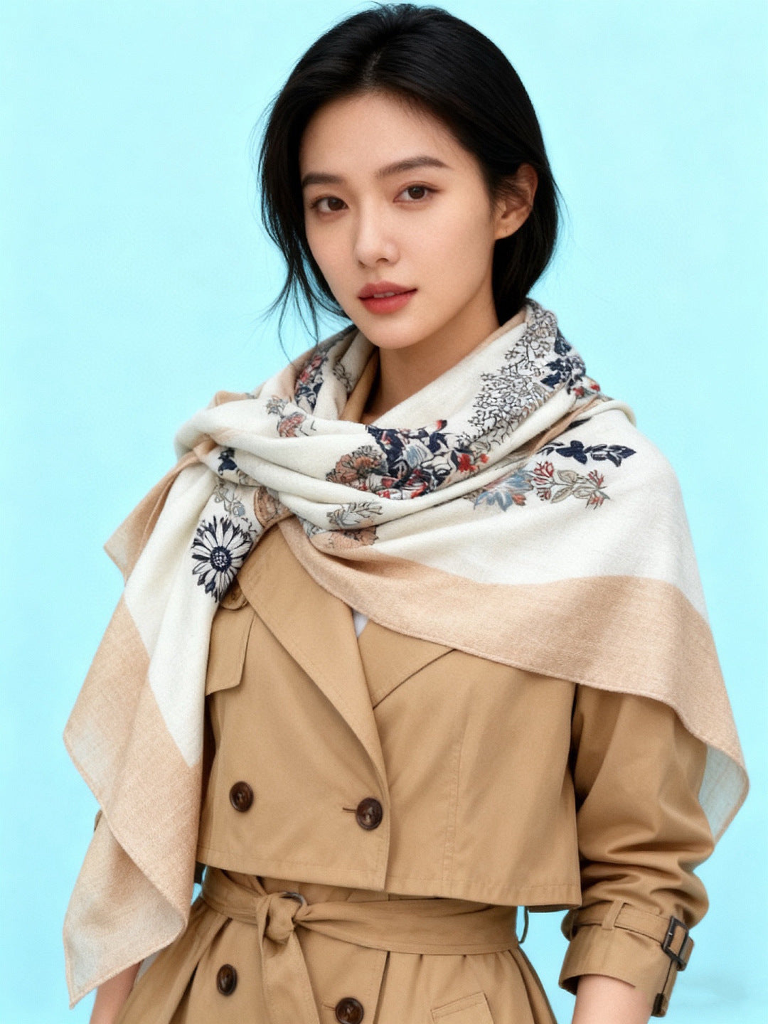 HM 25s Velvet Square Scarf 140cm White Beige Black Cashmere 976216