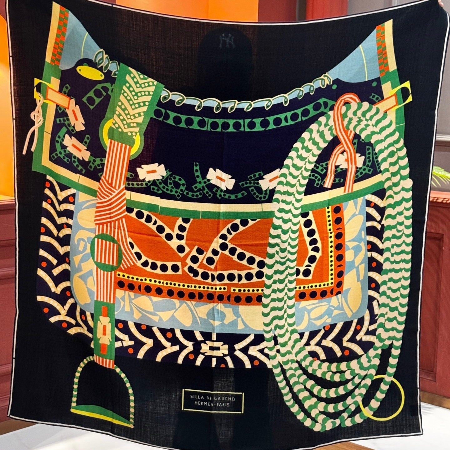 HM Dressage Tressage 140 CM Black Green Colorful Cashmere And Silk 293231